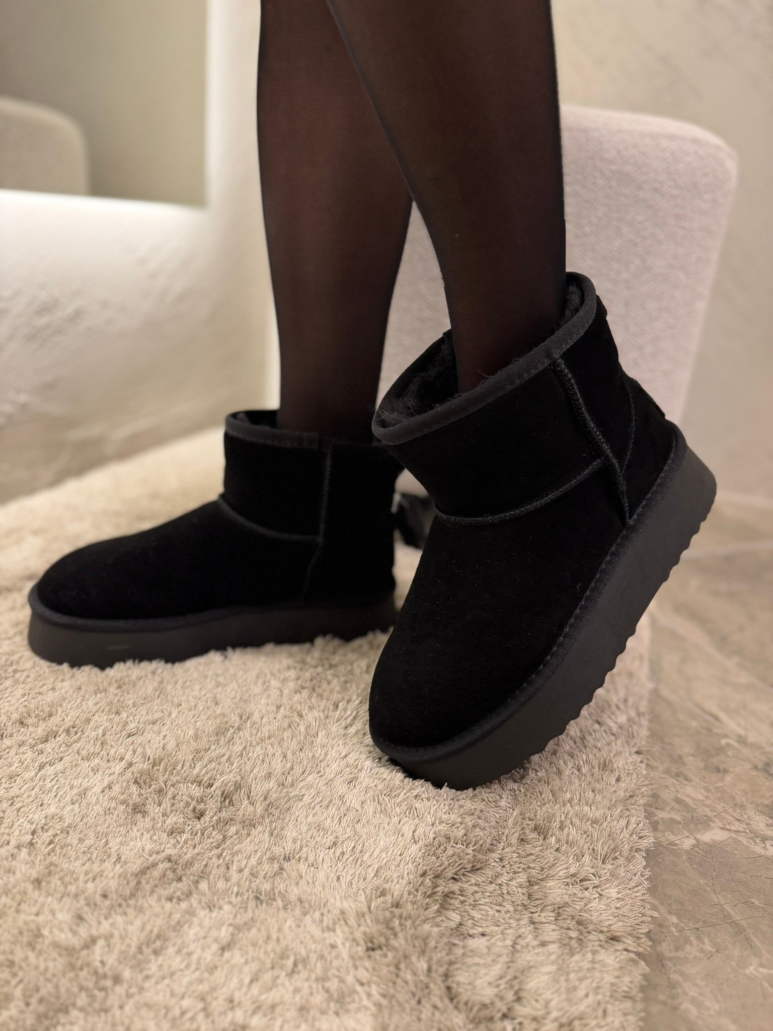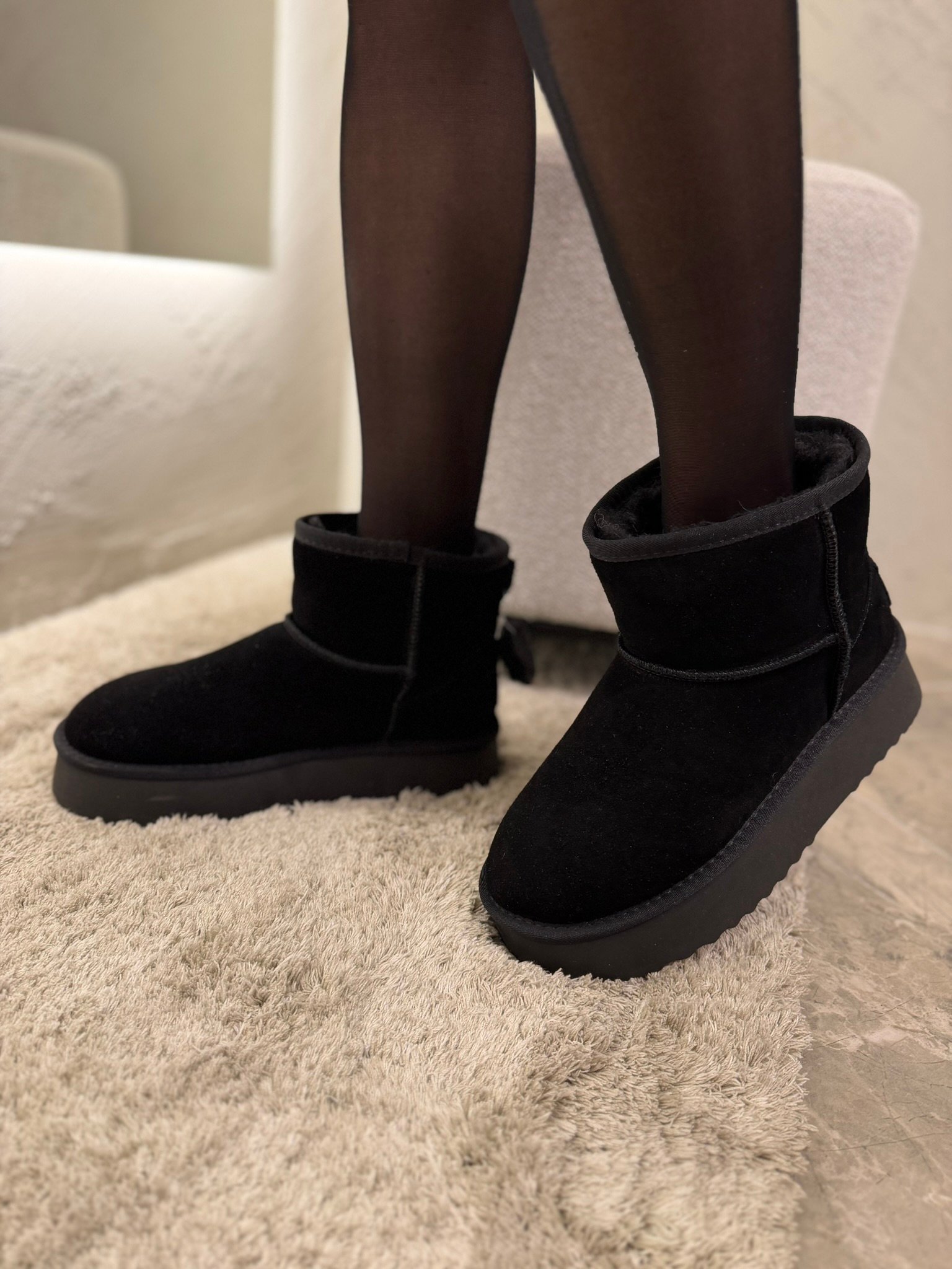 Šie batai yra pagaminti iš verstos odos ir turi vilnos pamušalą, kas suteikia ne tik išskirtinę šilumą, bet ir komfortą. Versta oda suteikia prabangos ir elegancijos pojūtį, o vilnos vidus užtikrina, kad kojos būtų šiltos ir sausos net ir šaltomis dienomis.