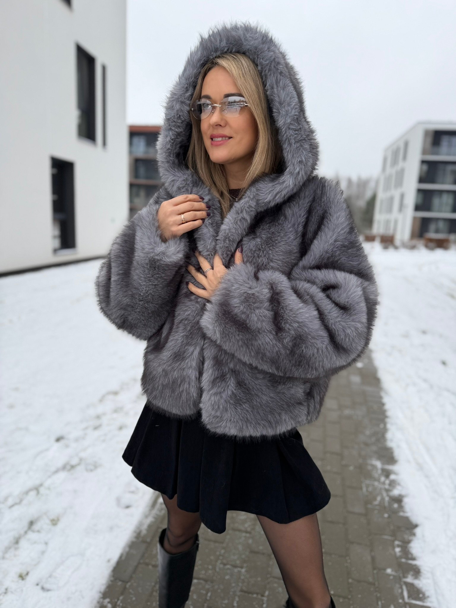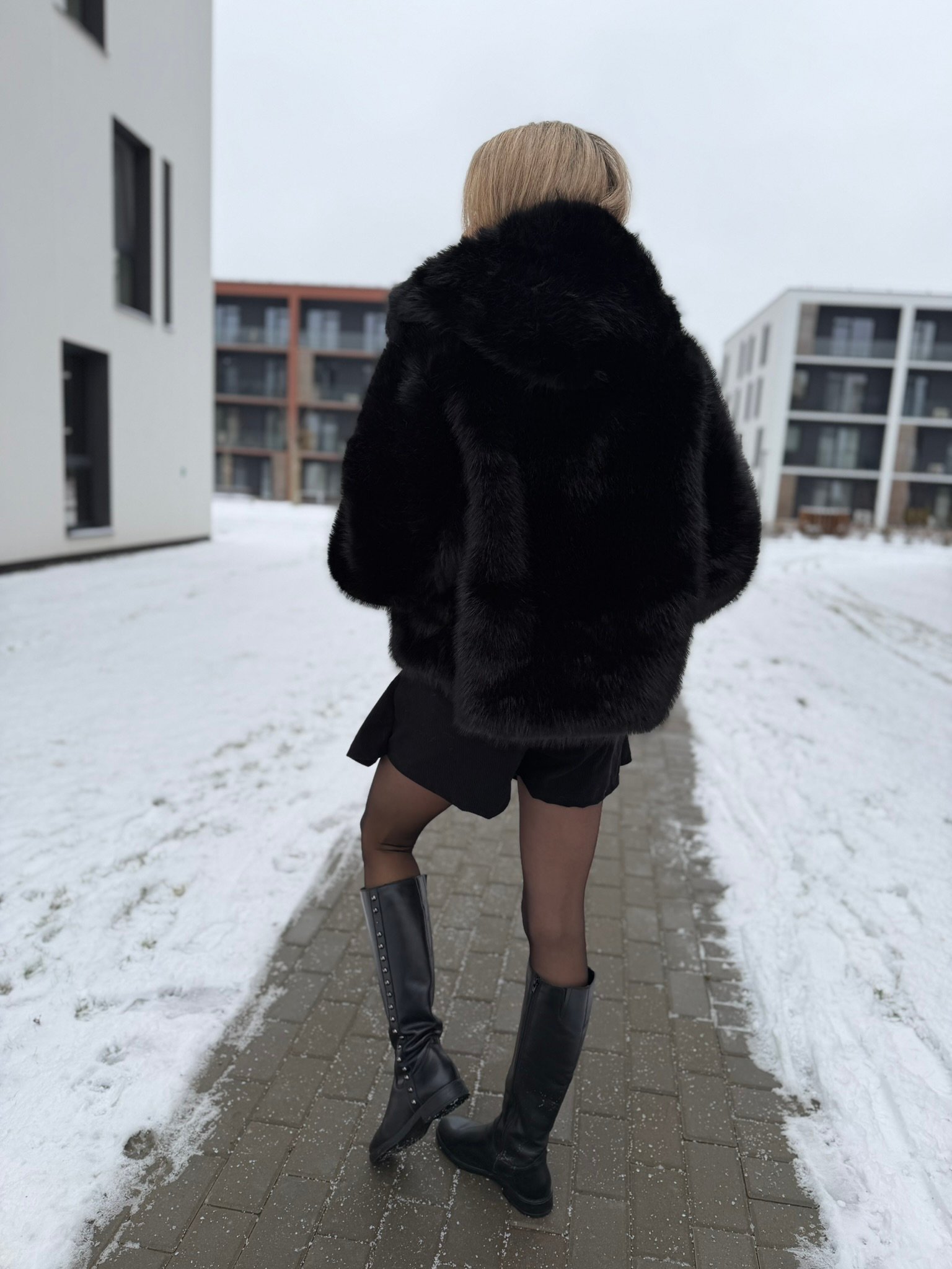 „Frost Luxe is a fur coat that looks like it came straight from the most luxurious winter resort. The dense, velvety faux fur has a texture reminiscent of mink fur, and the softness against the skin creates that special, easily addictive feeling of cosiness.