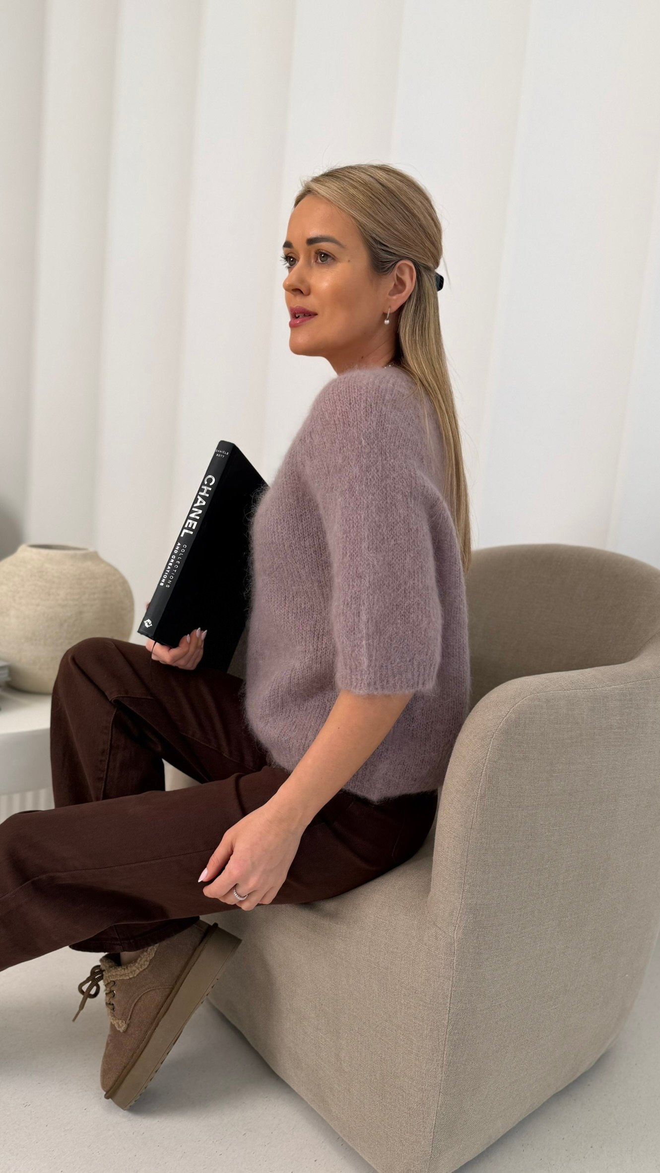 Lengvas, švelnus ir nepaprastai jaukus – „Mohair Soft Aura“ megztinis sukurtas toms, kurios vertina subtilią prabangą kasdien. 80 % kid mohera suteikia išskirtinį minkštumą ir lengvumo pojūtį, o trumpintos rankovės kuria modernų, stilingą siluetą.