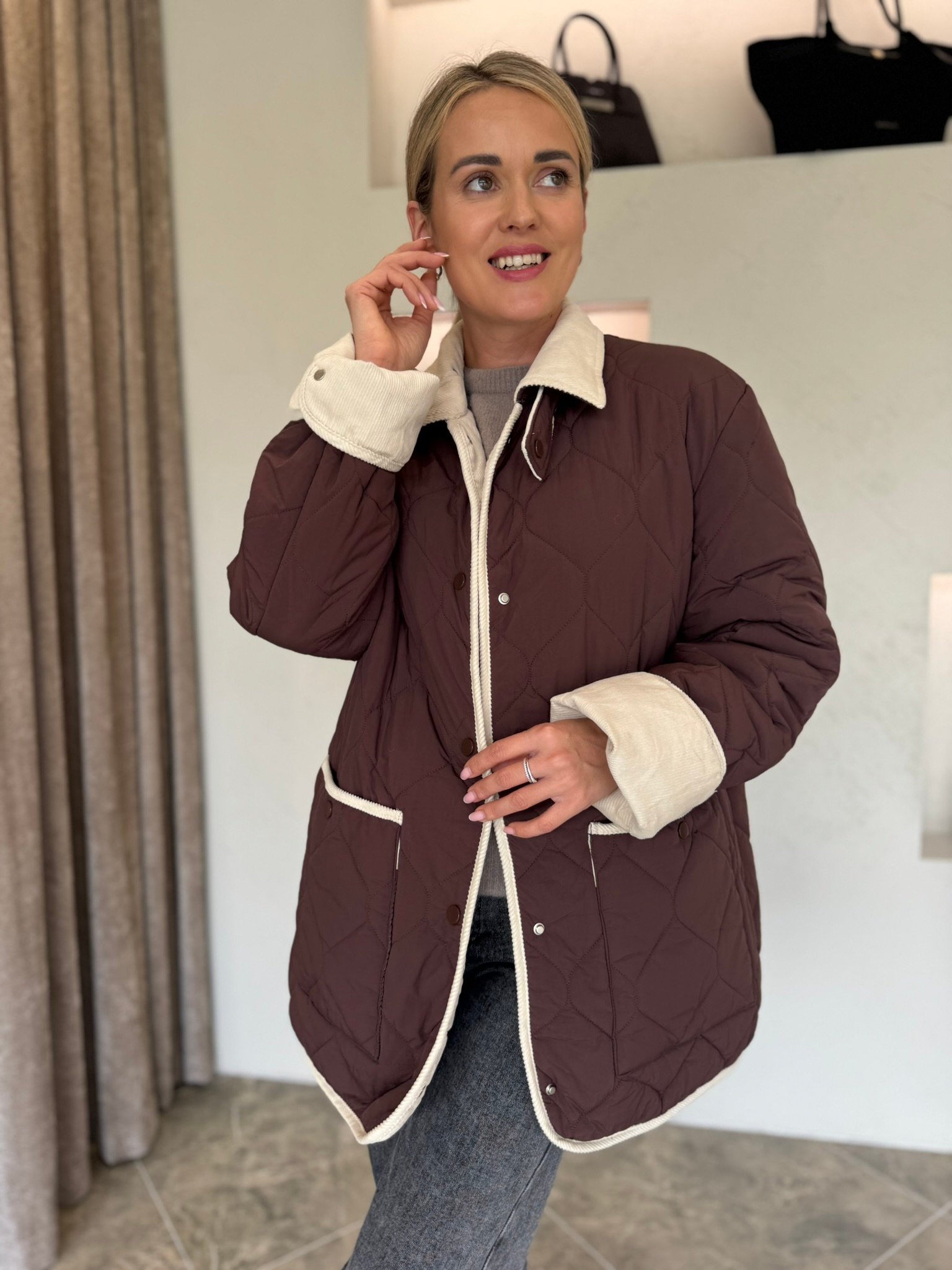 „Cozy Quilt“ – pavasario sezono striukė, kurioje dera komfortas ir stilius. Lengvas dygsniuotas audinys saugo nuo vėjo, o patogus oversize siluetas suteikia laisvumo pojūtį ir leidžia lengvai derinti tiek prie džinsų, tiek prie klasikinių kelnių ar sijono.