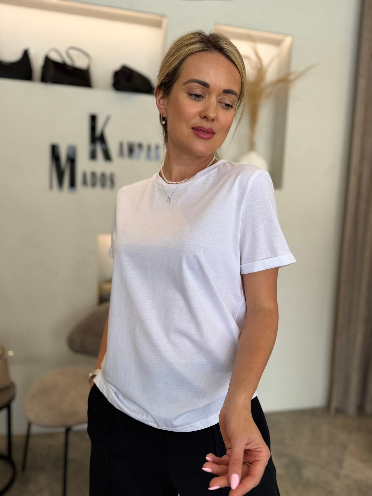 Klasikinė apvali iškirptė, dailiai atlenktos rankovės ir švarus siluetas leidžia juos lengvai derinti su kelnėmis, džinsais ar sijonu. Puikiai atrodo tiek vieni, tiek po švarku ar megztiniu.