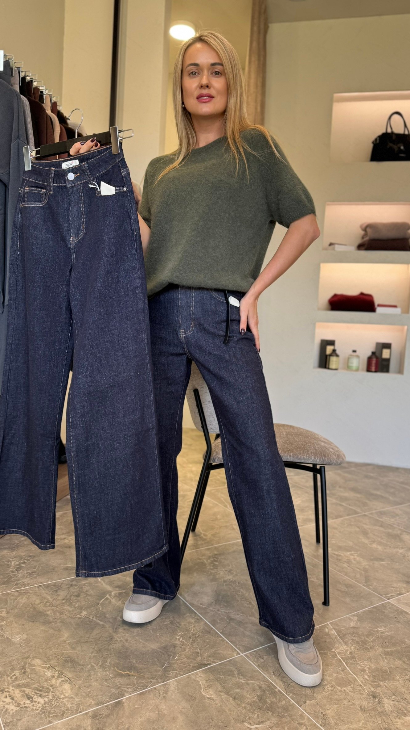 Šie tamsaus džinso „Classic Denim Grace“ džinsai – universalus pasirinkimas tiek kasdienai, tiek stilingesniam deriniui. Aukštas liemuo pabrėžia figūrą, o tiesaus, laisvesnio kritimo klešnės suteikia komforto ir elegancijos.
