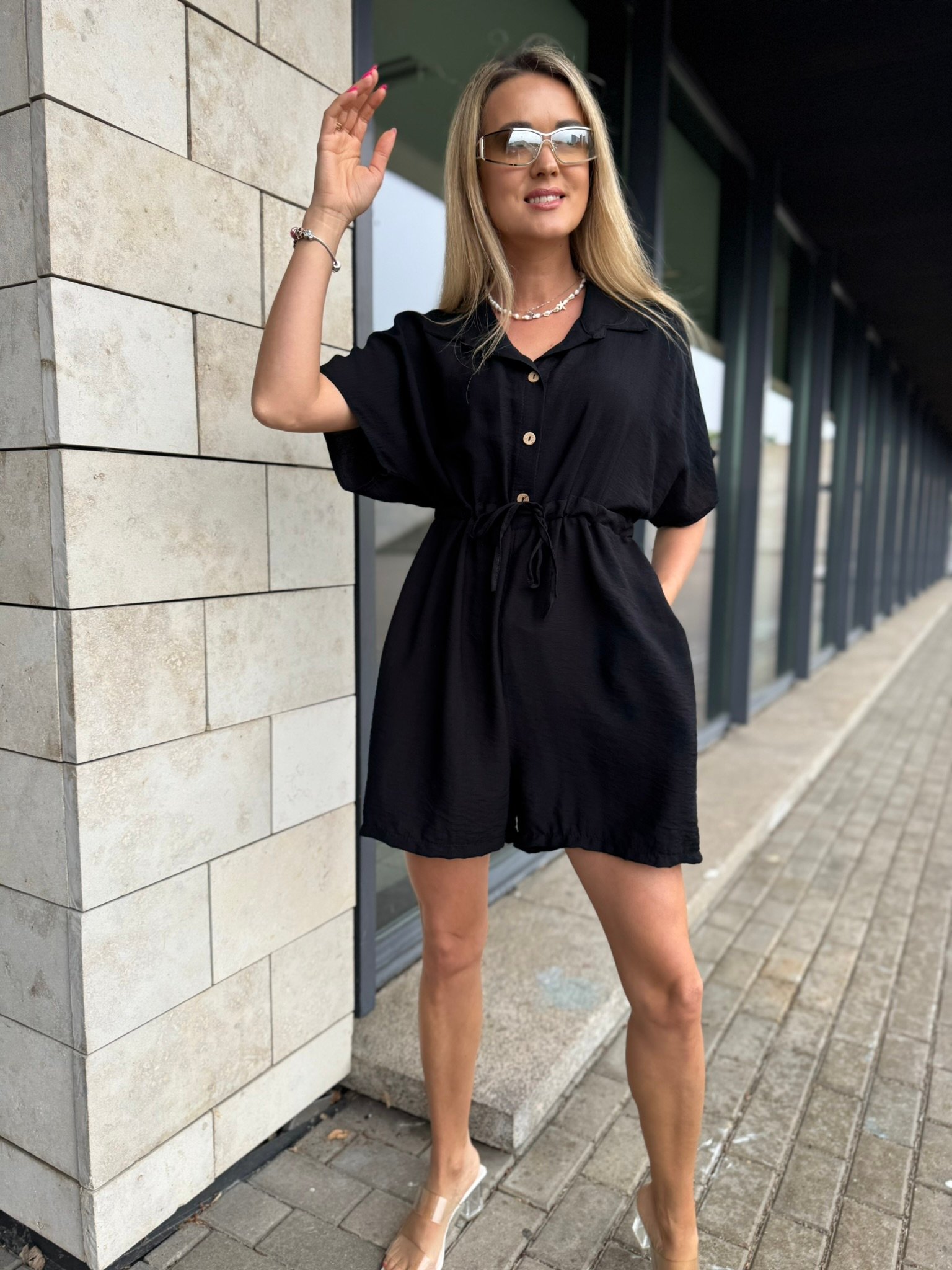 „Luna Move“ kombinezonas – tai miesto elegancija ir patogumas viename: laisvai krintanti medžiaga, paryškinantis liemens raištelis ir paslėptas moteriškumas. Tinka darbui, laisvalaikiui ar net vakarui – kai nori atrodyti stilingai be jokio vargo.