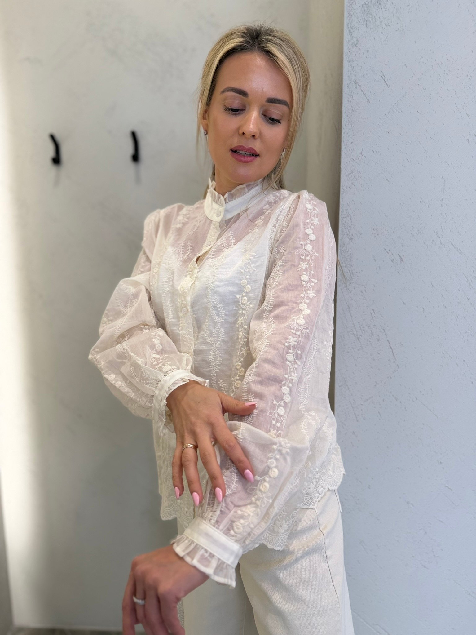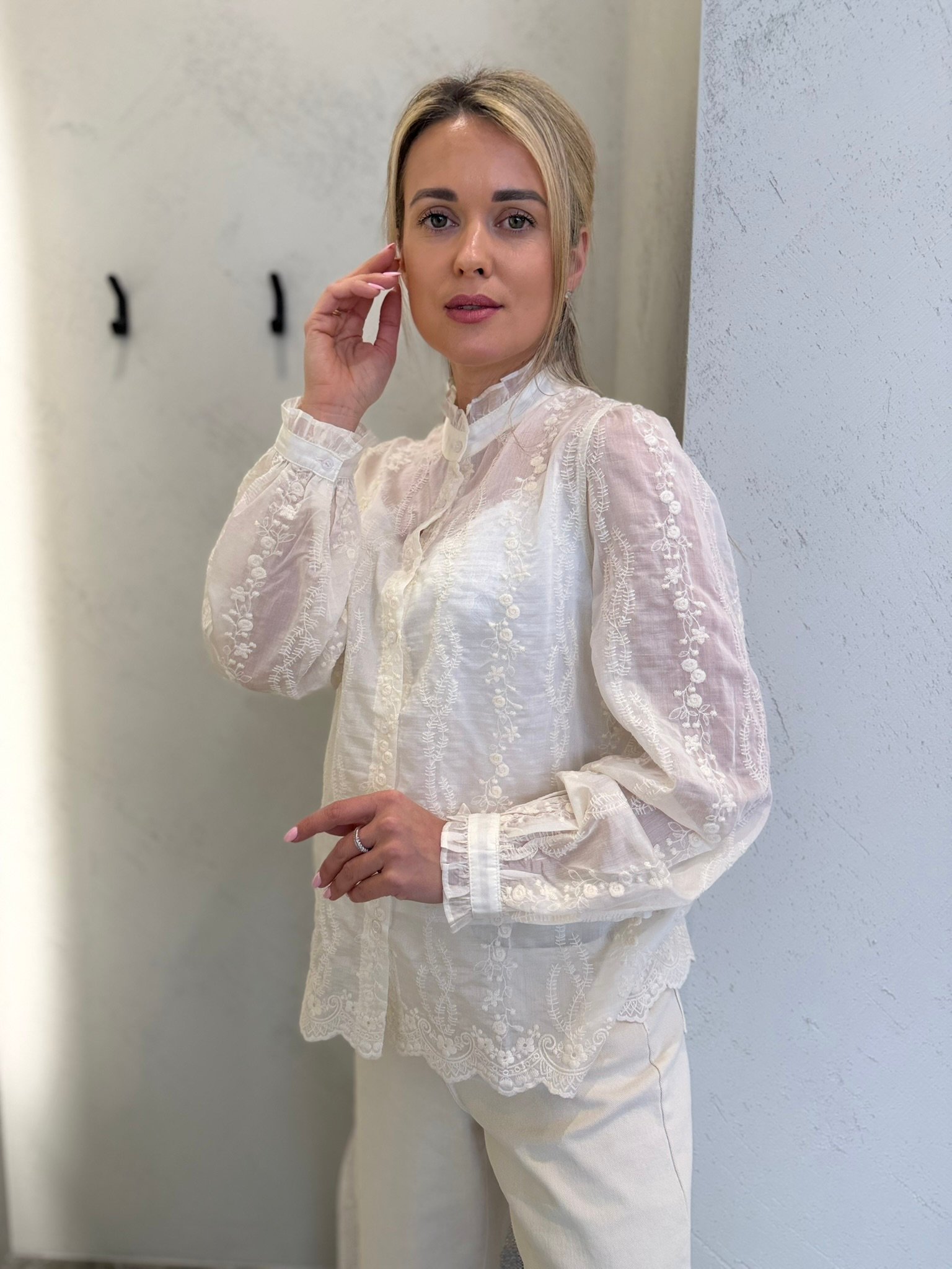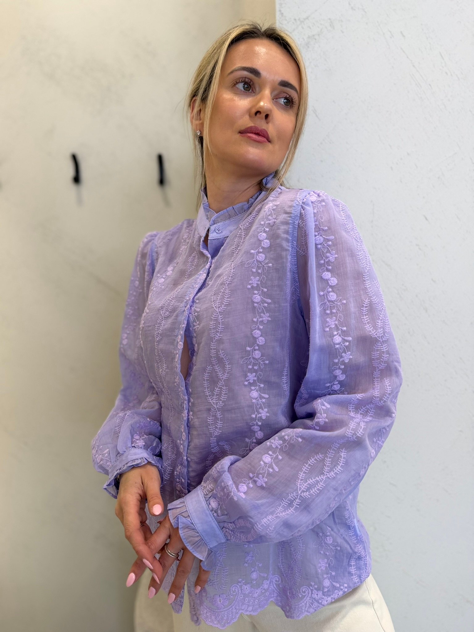Lengvi, moteriški ir subtiliai romantiški – „Lucea“ marškiniai sukurti toms, kurios vertina eleganciją be pastangų. Švelniai krentantis audinys, dekoratyvūs siuvinėti raštai ir lengvas permatomumas suteikia įvaizdžiui itališko lengvumo bei rafinuoto žavesio.