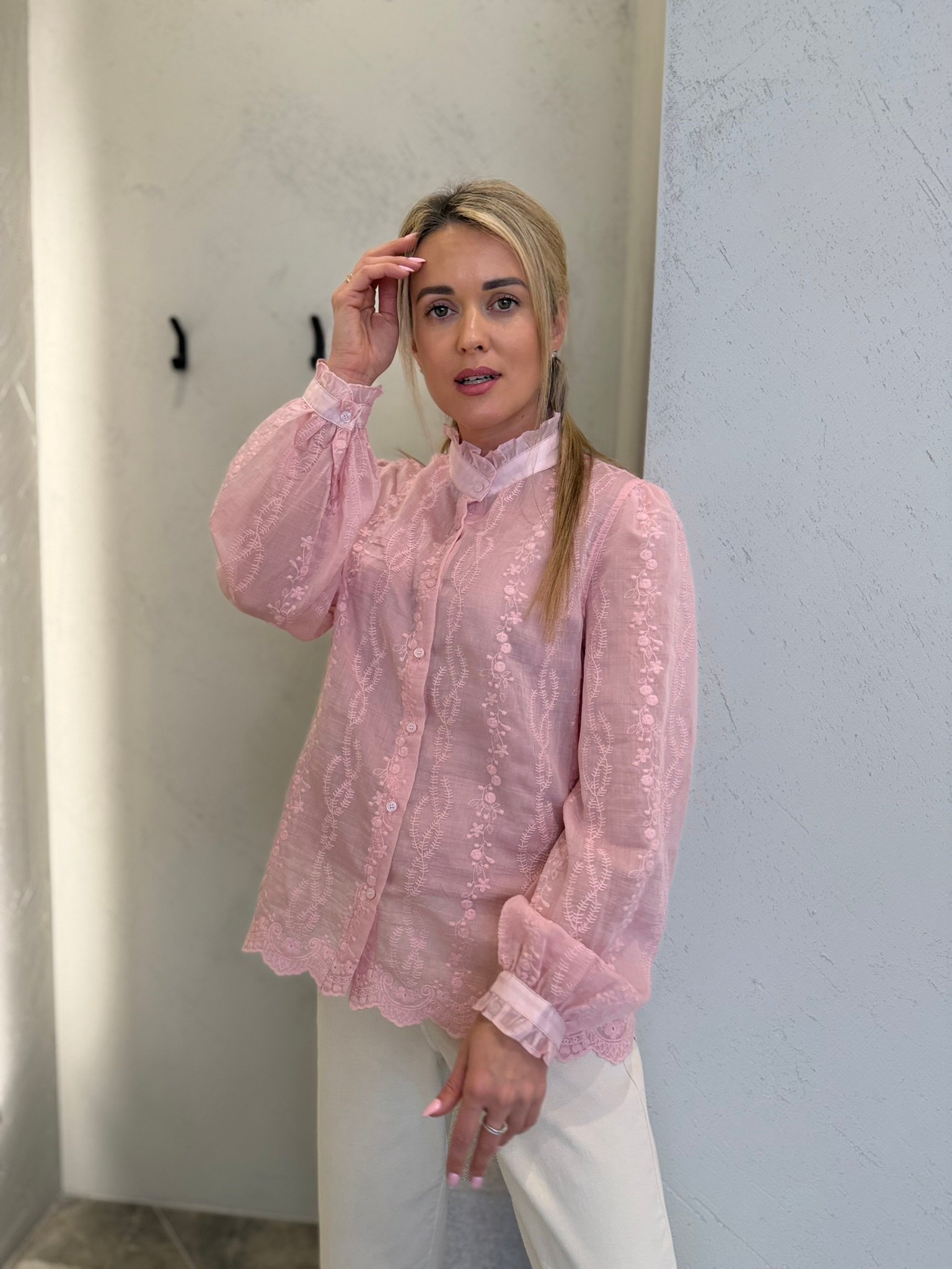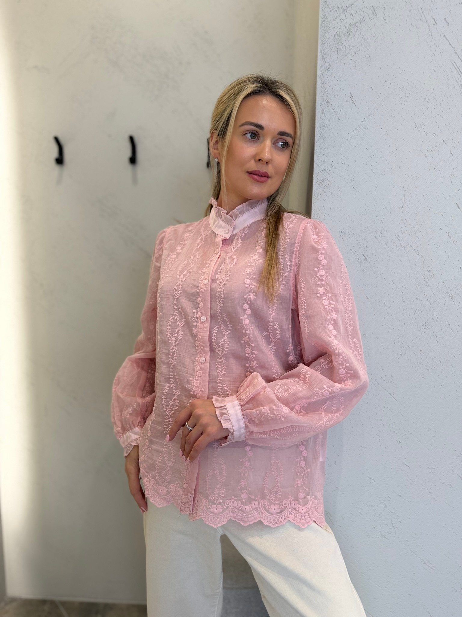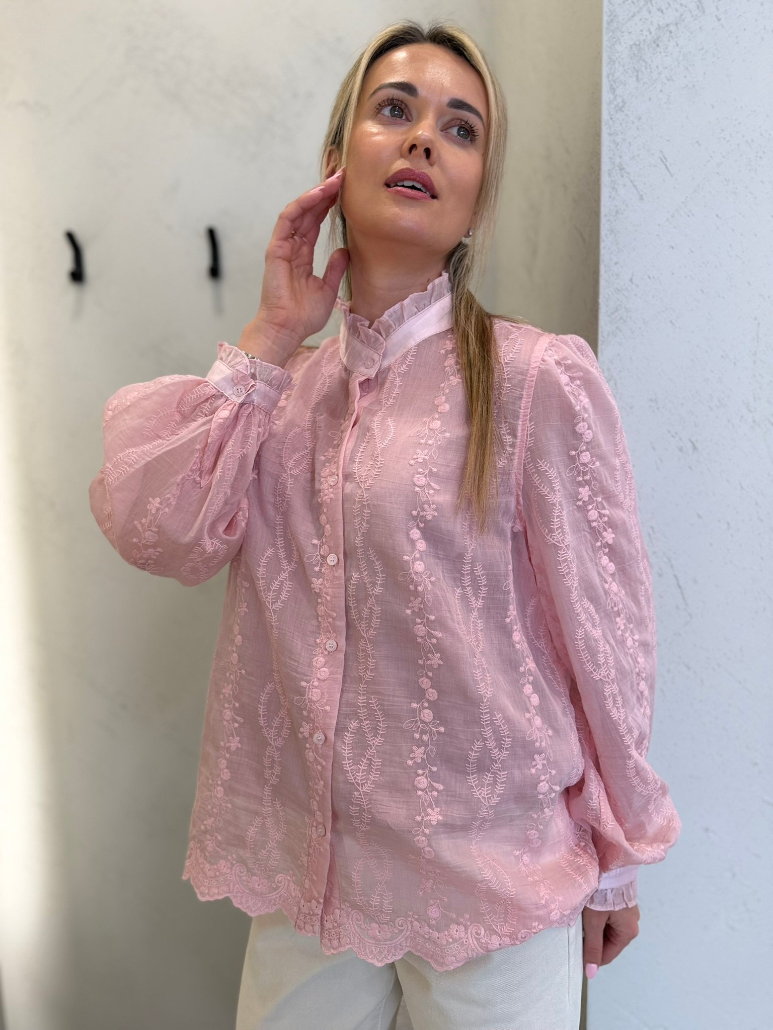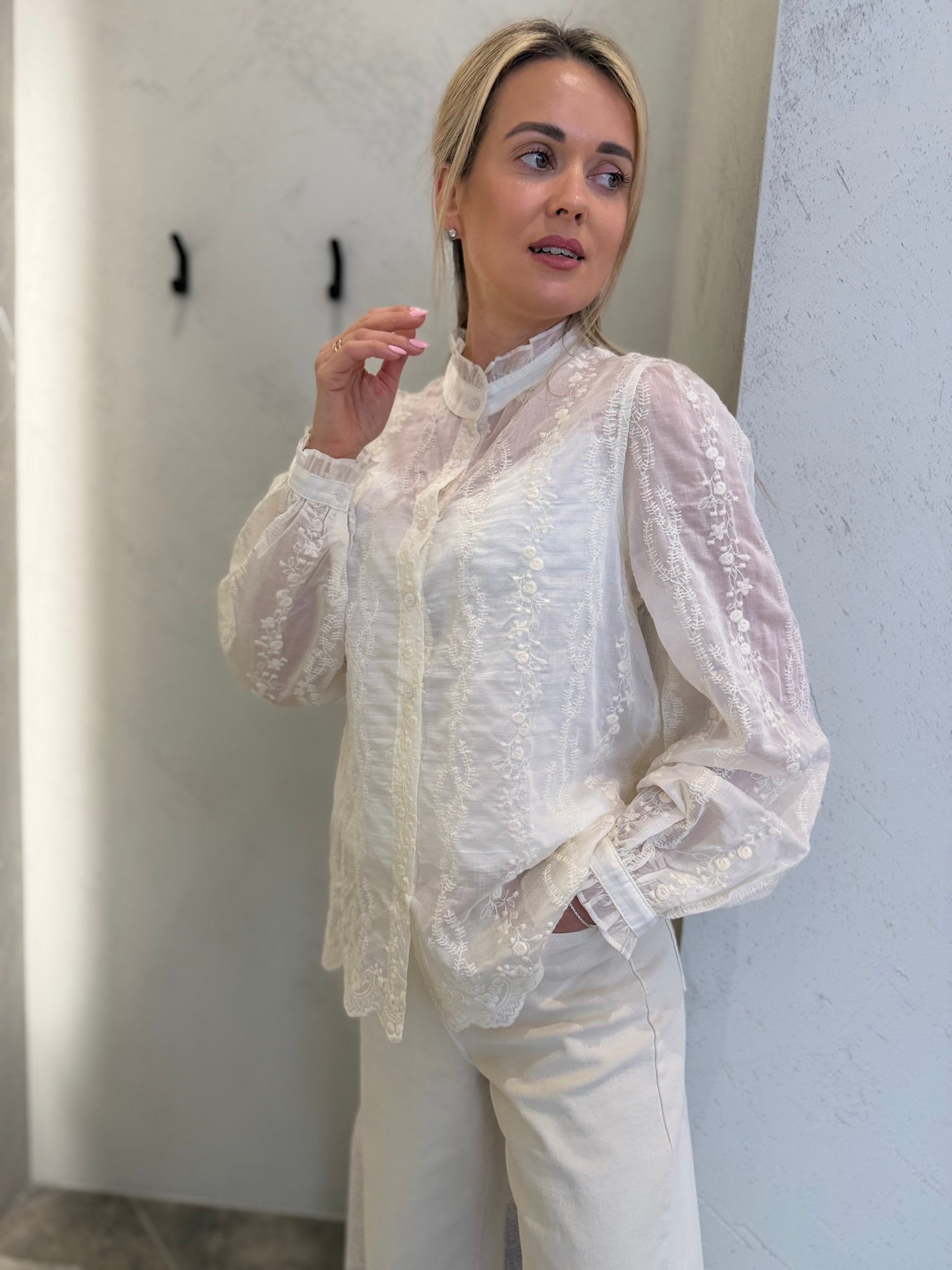 Lengvi, moteriški ir subtiliai romantiški – „Lucea“ marškiniai sukurti toms, kurios vertina eleganciją be pastangų. Švelniai krentantis audinys, dekoratyvūs siuvinėti raštai ir lengvas permatomumas suteikia įvaizdžiui itališko lengvumo bei rafinuoto žavesio.