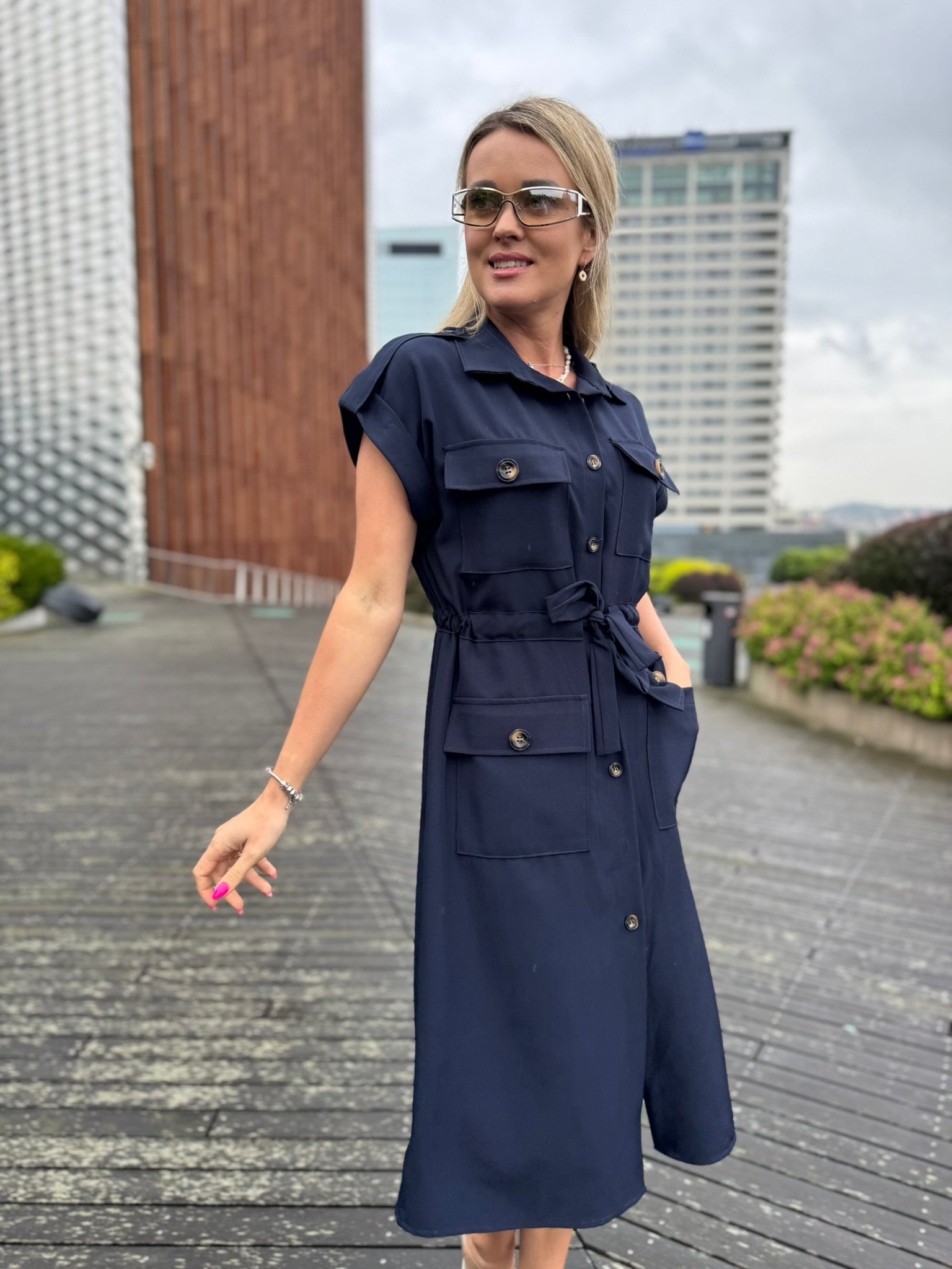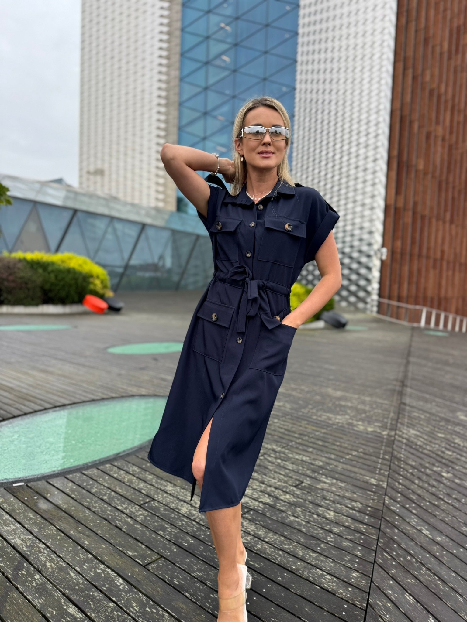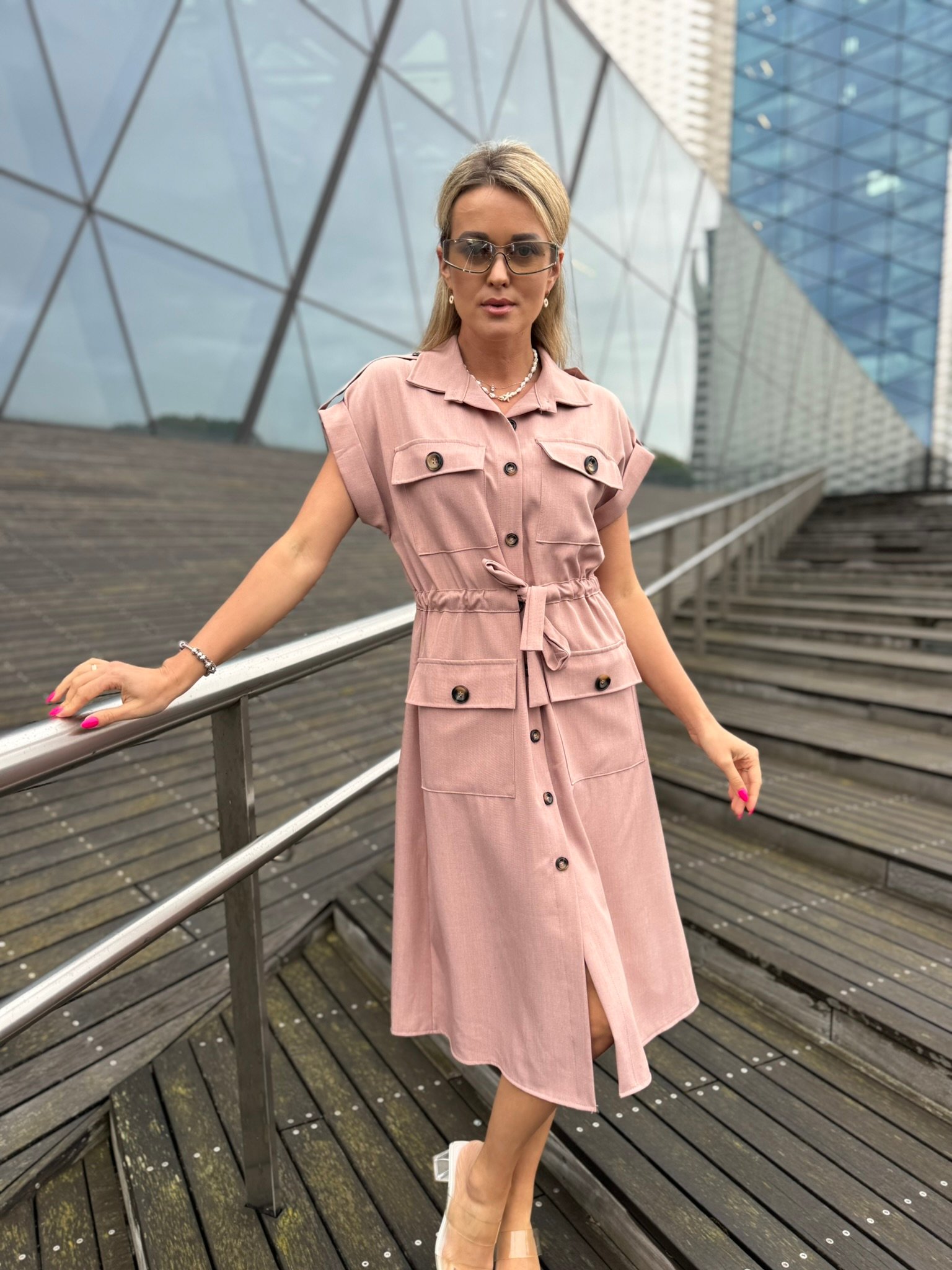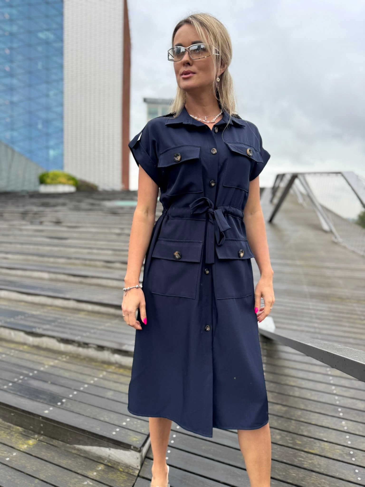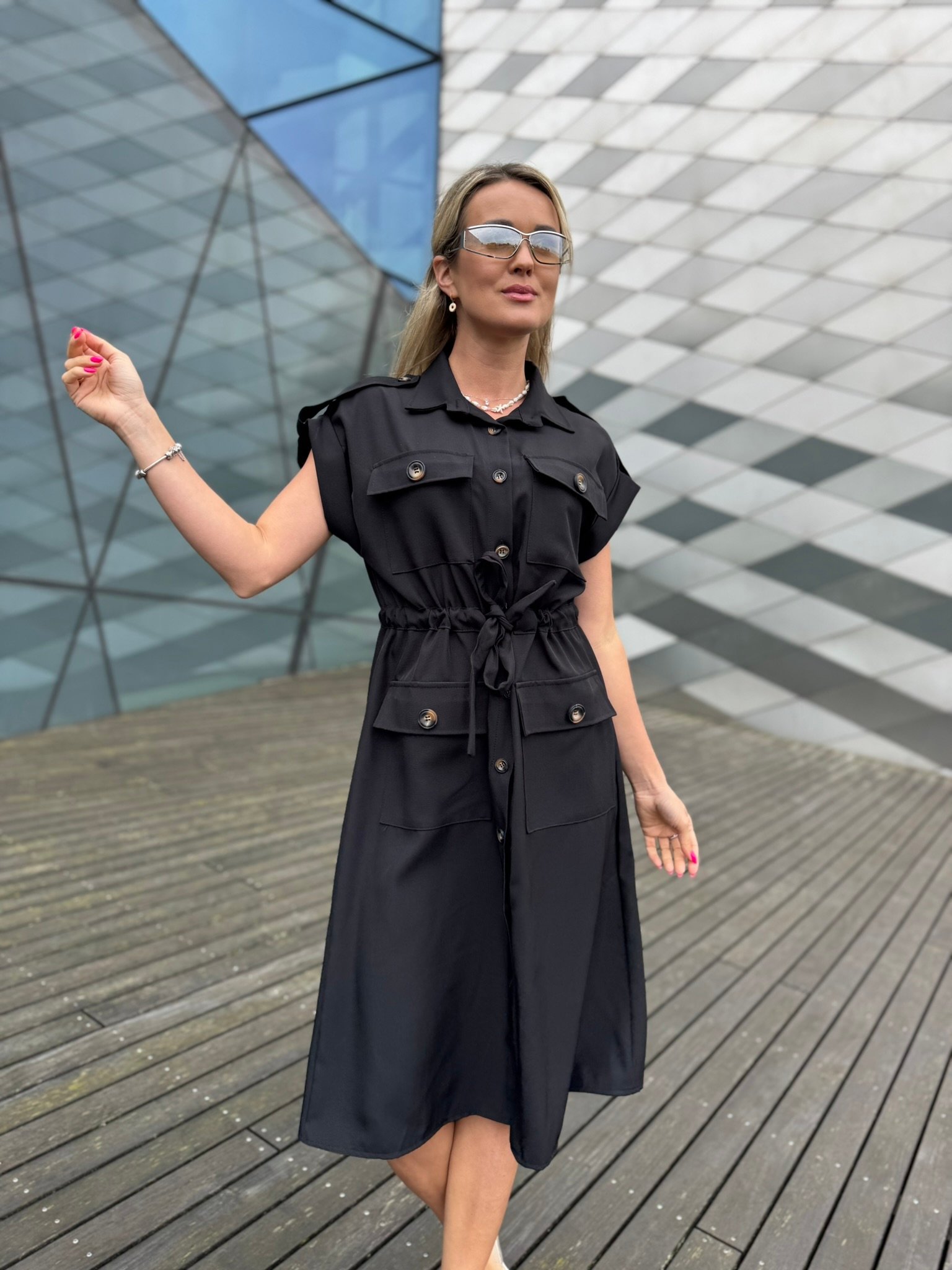 Ši suknelė įkūnija stilių ir praktiškumą. Dvi didelės kišenės ne tik dekoratyvios – jos pravers kasdienybėje.
