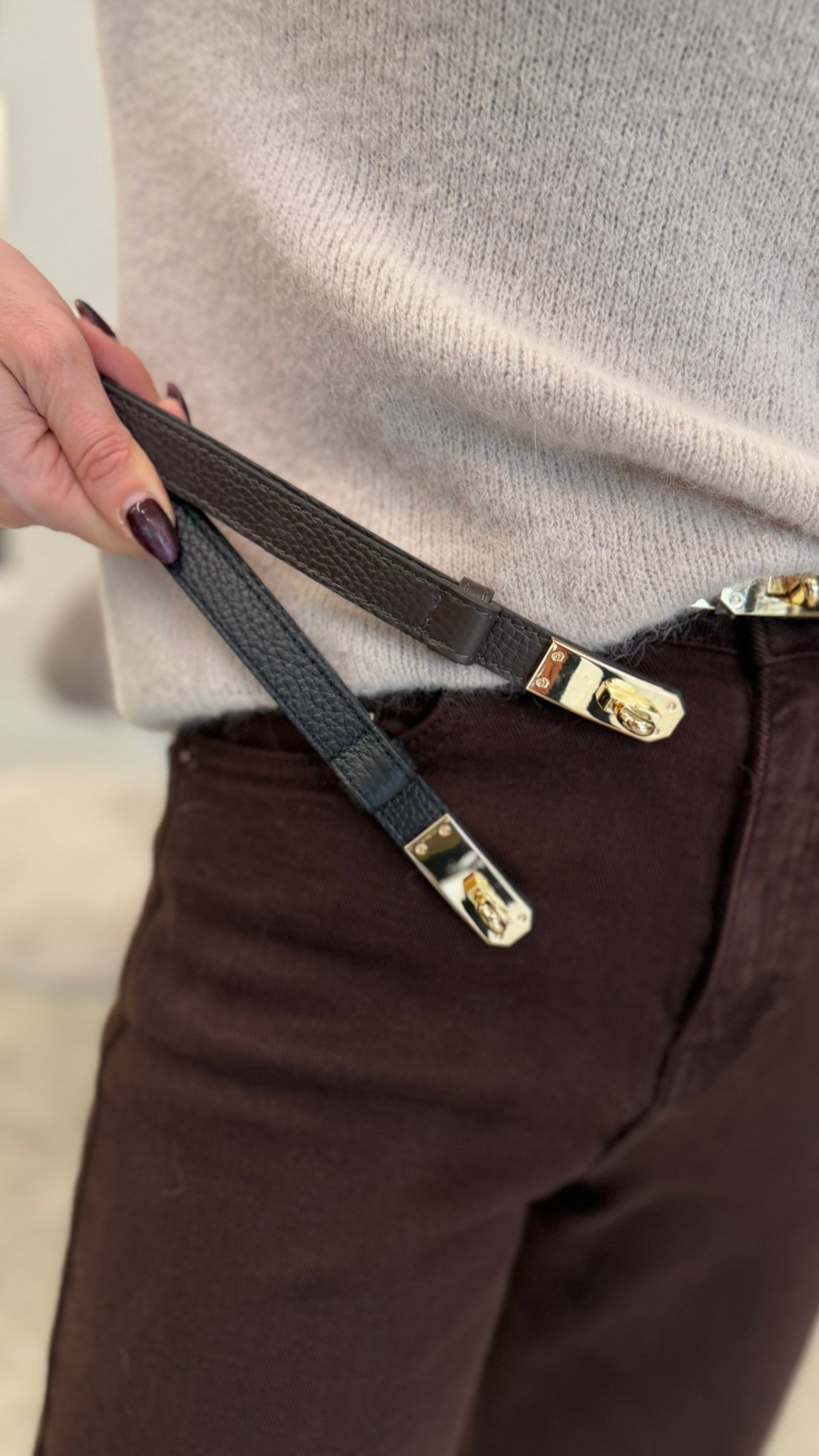 Pagamintas iš aukštos kokybės odos su tvirta metaline sagtimi, šis aksesuaras suteikia subtilaus išbaigtumo tiek kasdieniams džinsams, tiek elegantiškam kostiumėliui ar suknelei.