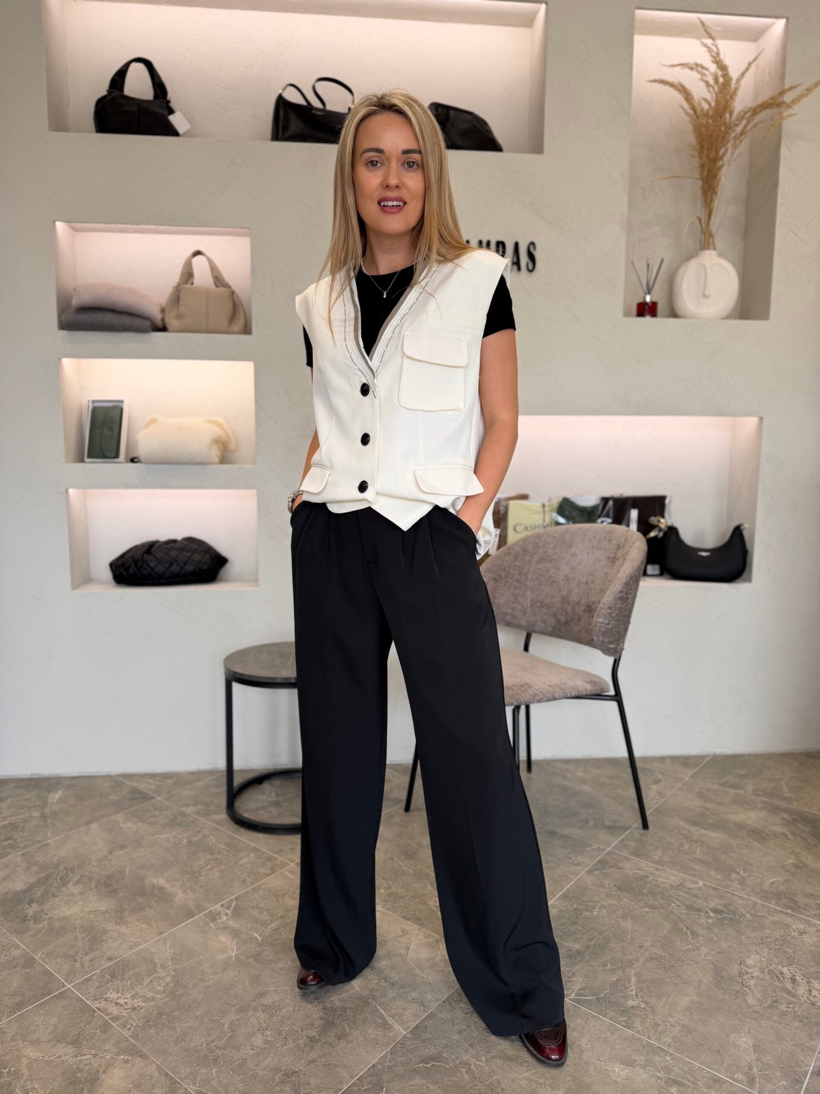 Puikiai dera tiek su marškiniais, tiek su megztiniais ar liemenėmis – nuo „office look“ iki laisvalaikio miesto stiliaus.