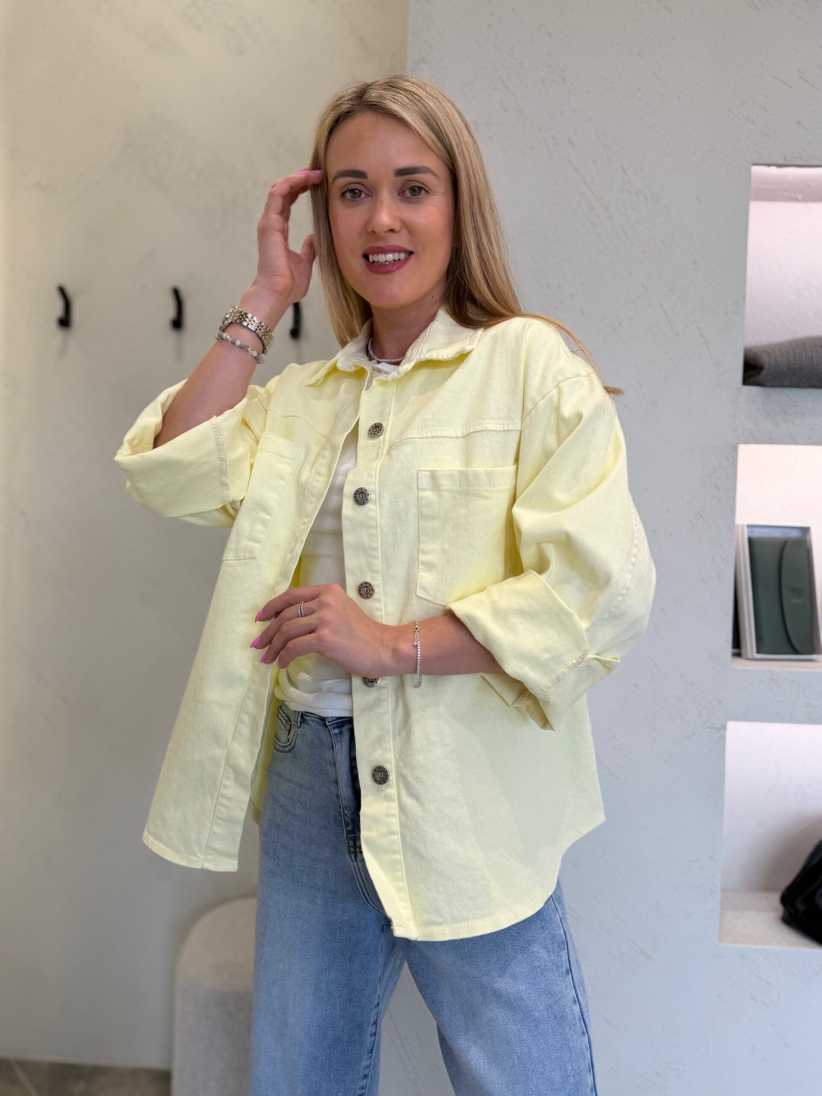 Lengvas, švelnus medvilninis audinys suteikia komforto, o švarkelio tipo siluetas – struktūros ir stiliaus pojūtį. Dėvėkite kaip marškinius arba lengvą viršutinį sluoksnį – atrodys tvarkingai, moderniai ir be pastangų.