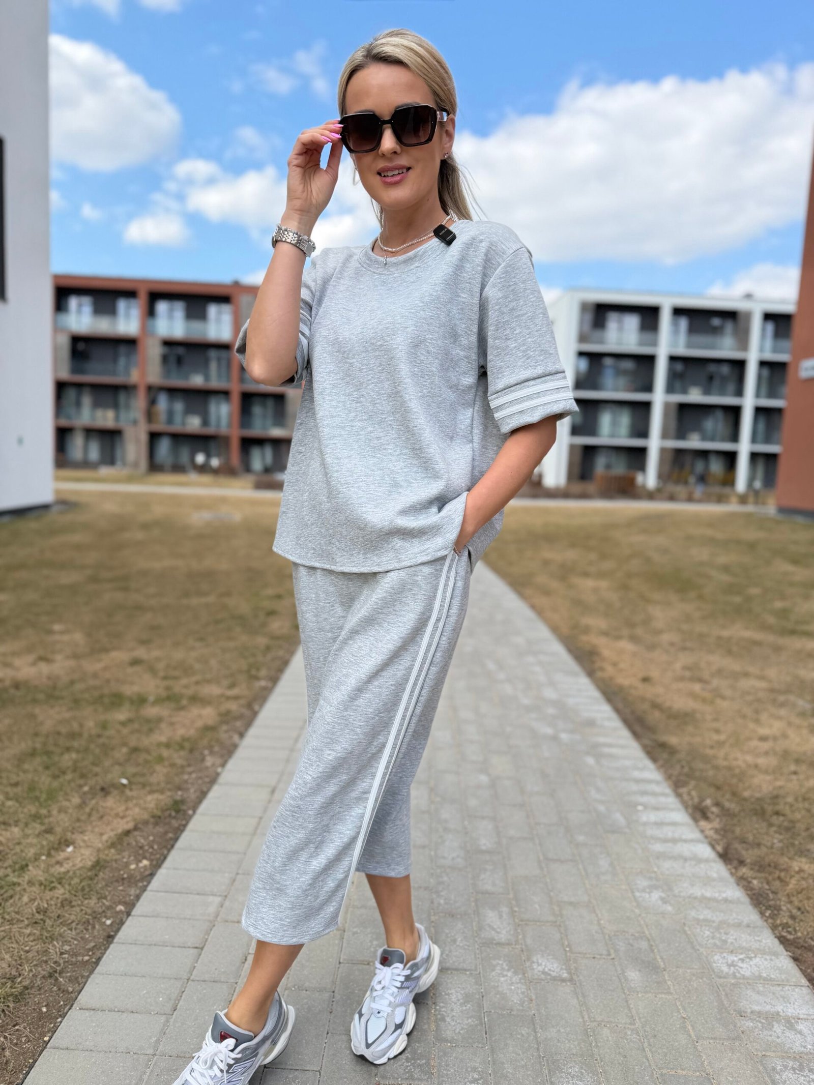 „Sporty Elegance“ kostiumėlis – tai modernus laisvalaikio derinys, kuris atrodo išbaigtai ir stilingai be jokių pastangų.