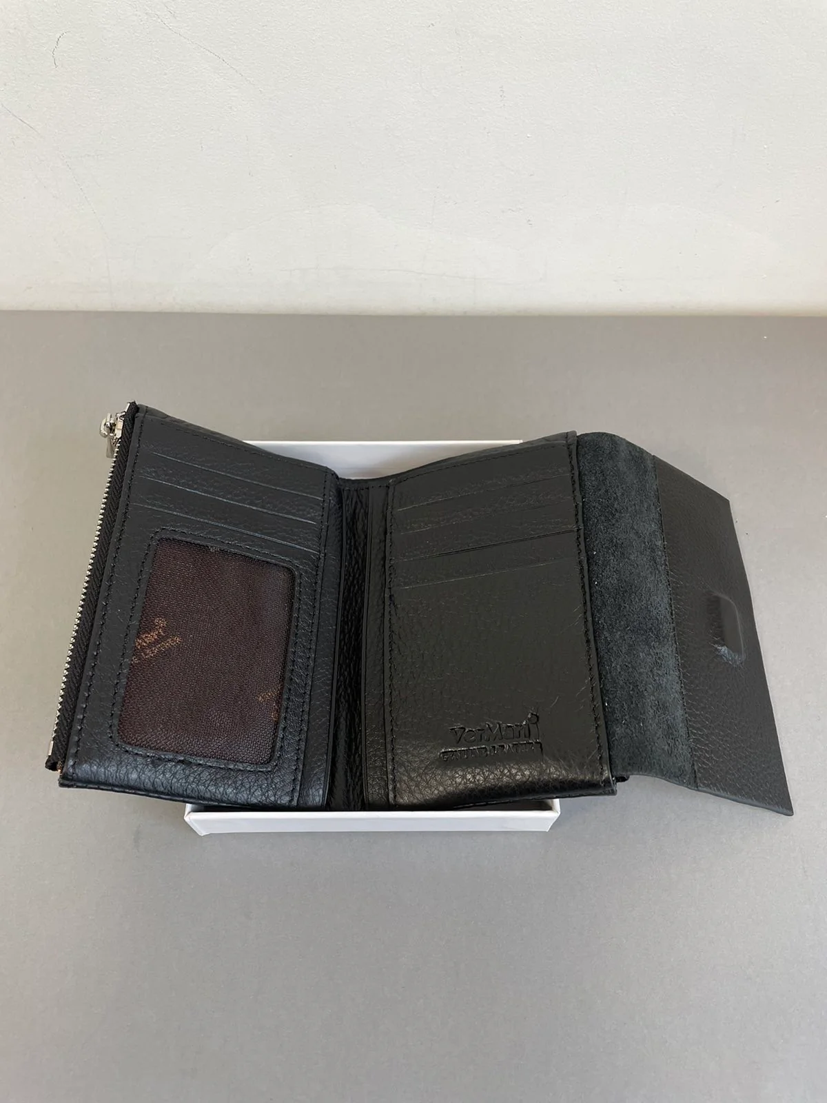 Minkšta natūrali oda maloniai guli rankoje, o praktiškas vidaus išdėstymas leidžia patogiai susidėti korteles, pinigus ir dokumentus.