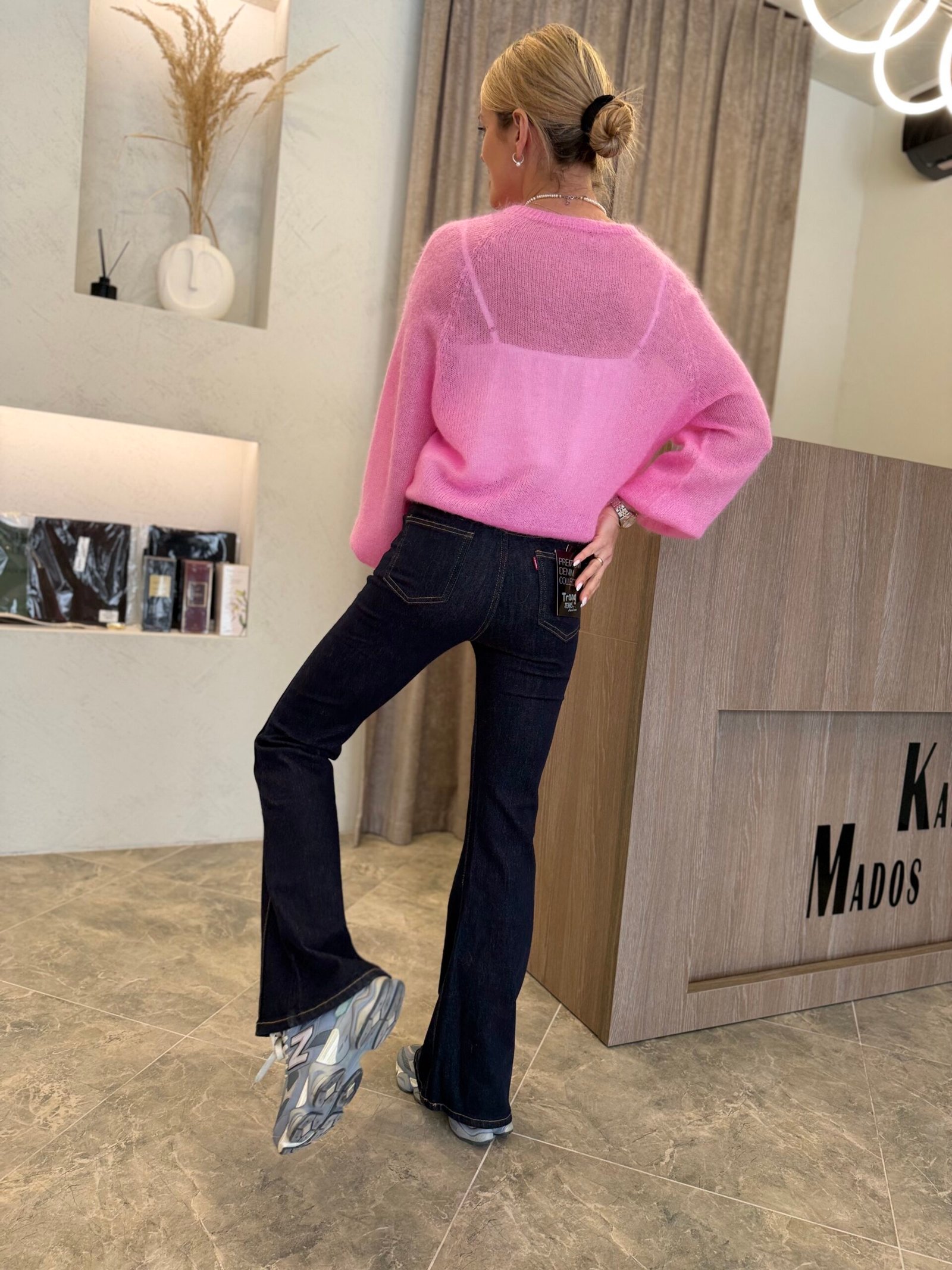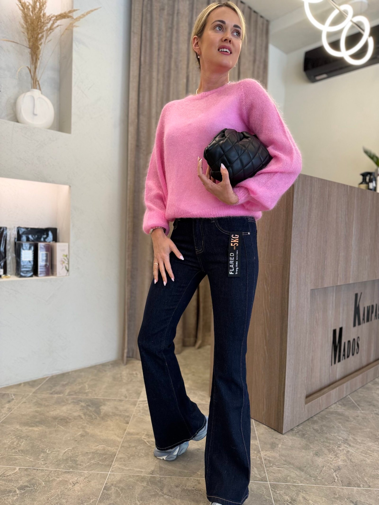 Platėjantys džinsai – tai modelis, kuris vizualiai ilgina kojas ir suteikia siluetui elegancijos. Aukštesnis liemuo gražiai priglunda ties liemeniu ir klubais, o nuo kelių švelniai platėjantis kirpimas kuria moterišką, išraiškingą liniją 🤍