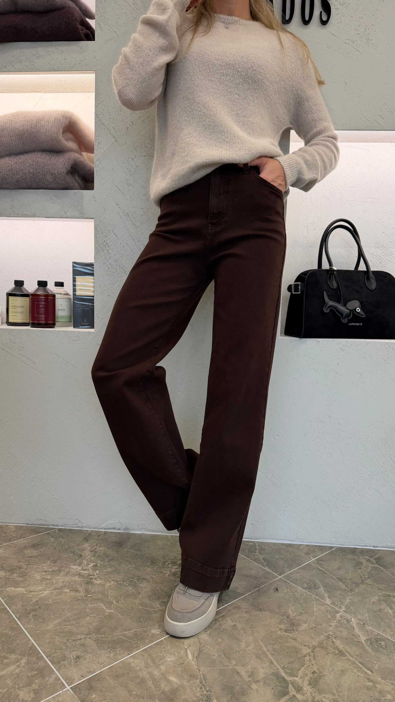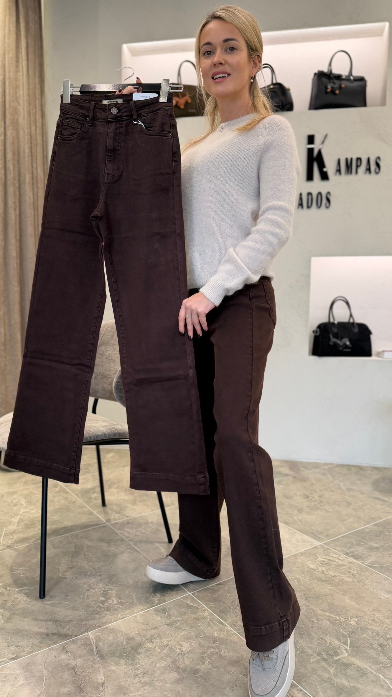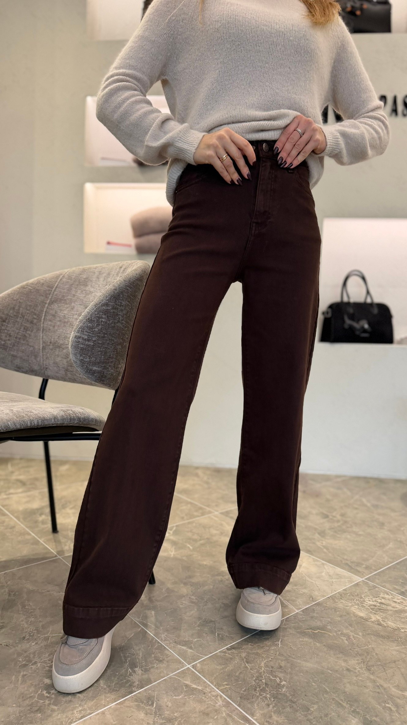 „Soft Choco Denim“ – tai tiesaus modelio šokolado atspalvio džinsai, kurie jungia komfortą ir subtilų stilių.