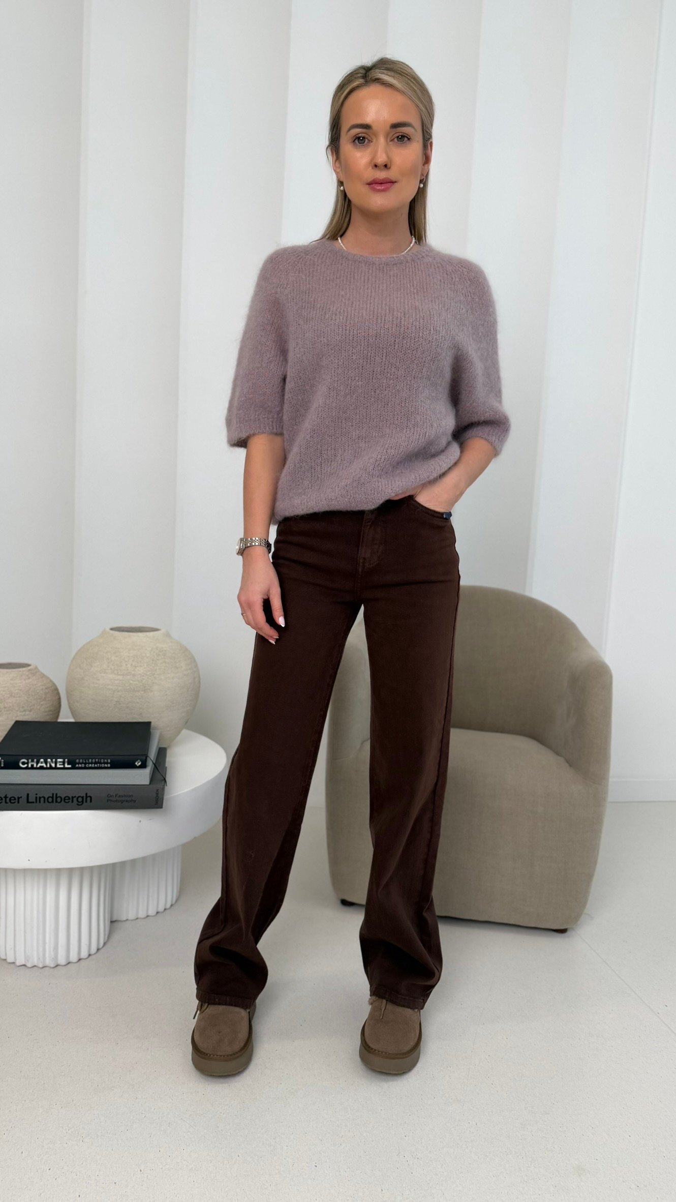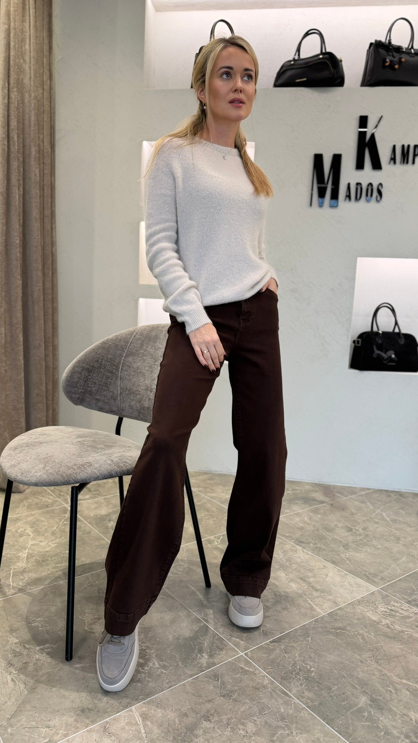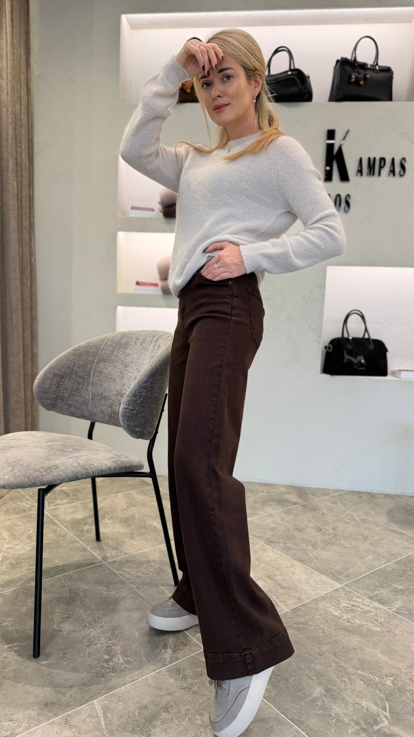 „Soft Choco Denim“ – tai tiesaus modelio šokolado atspalvio džinsai, kurie jungia komfortą ir subtilų stilių.