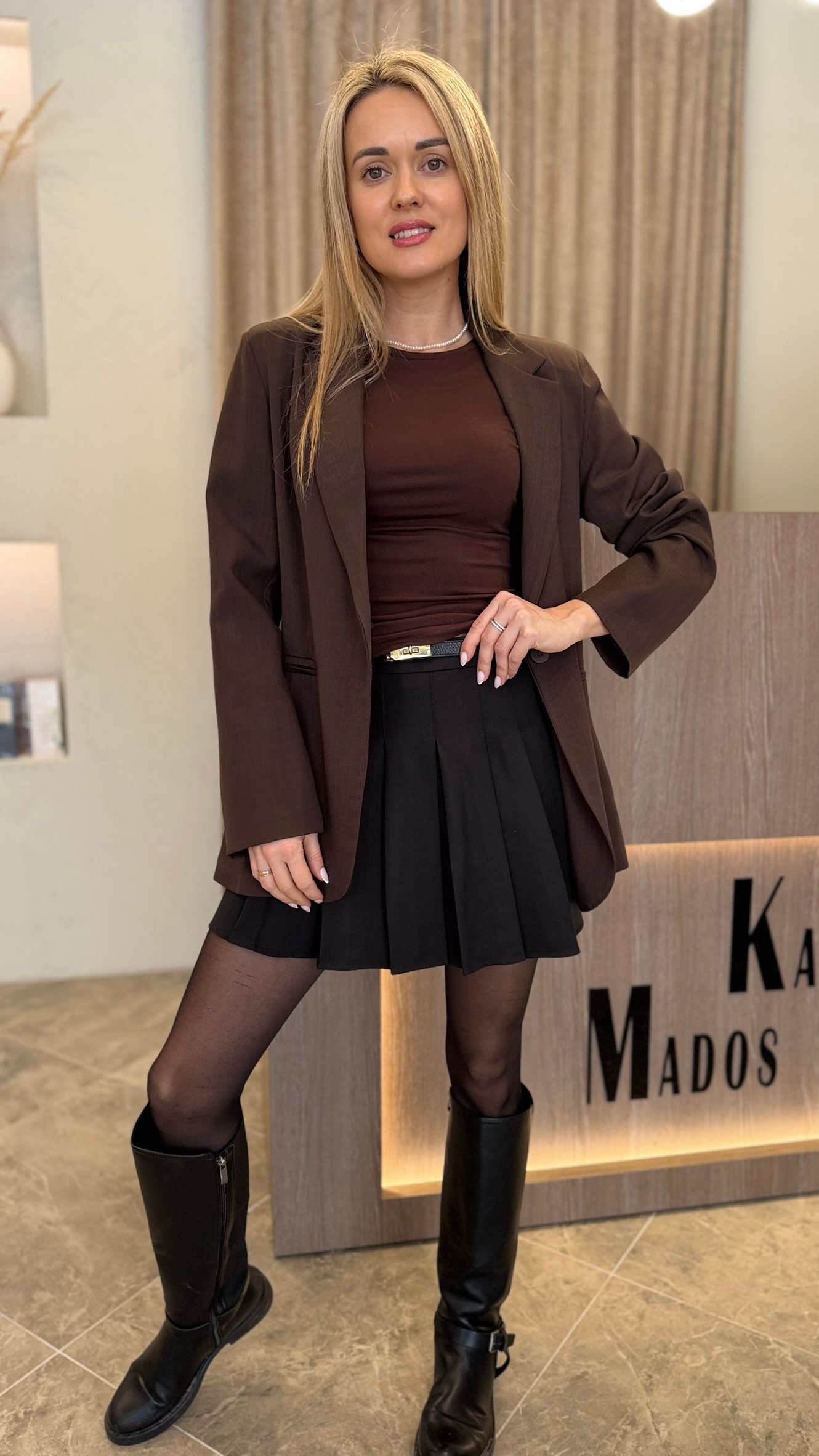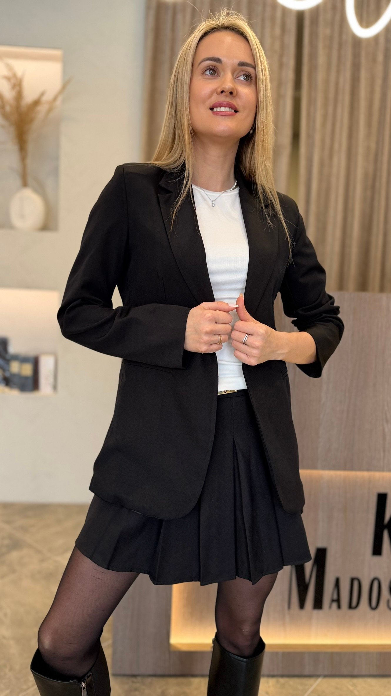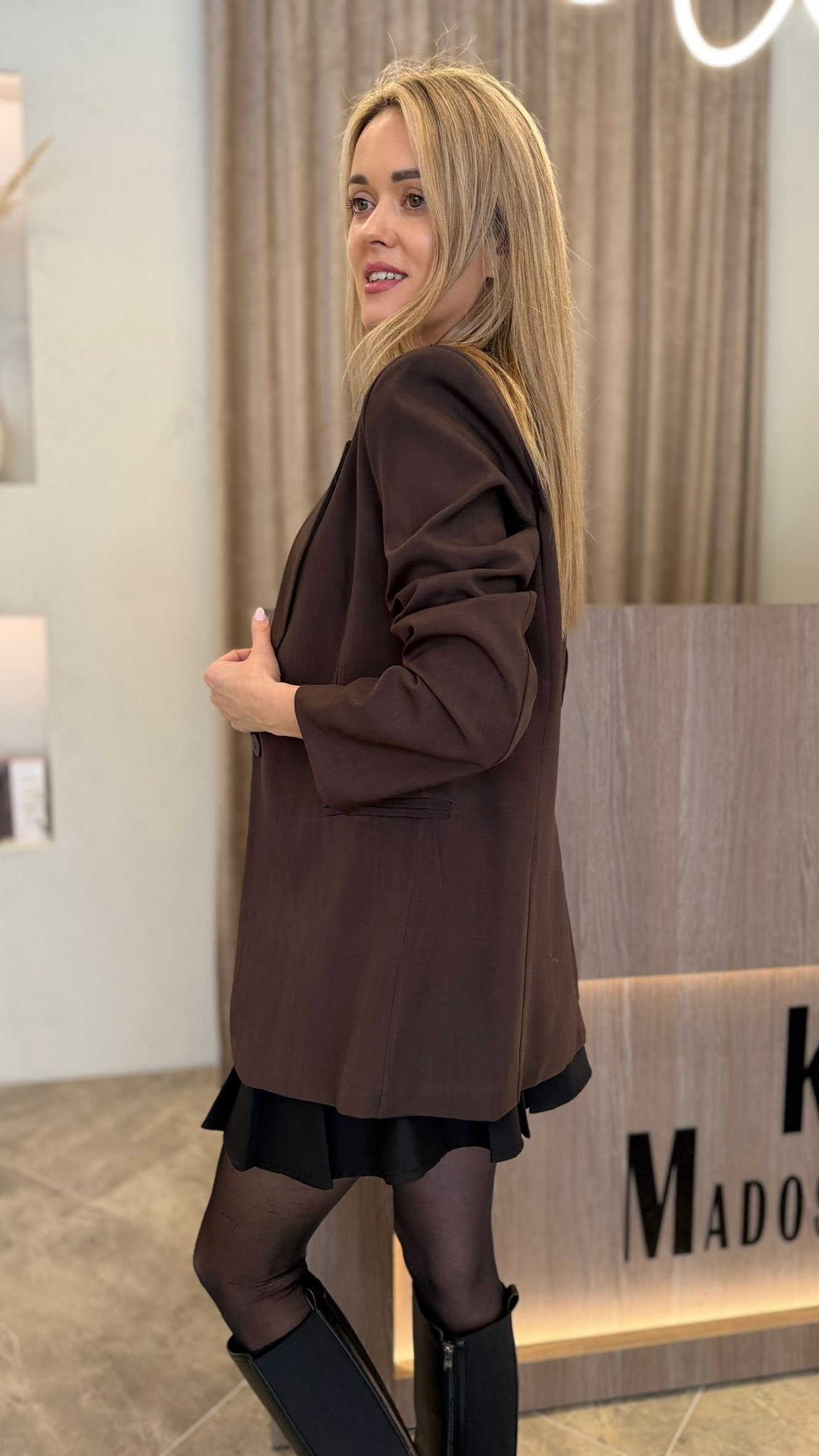 Stilingas, lengvai krentantis švarkas, kuris taps nepakeičiamu kasdieniu pasirinkimu. Klasikinio kirpimo, tačiau minkštas ir komfortiškas – puikiai dera tiek prie sijono, tiek prie kelnių ar džinsų.