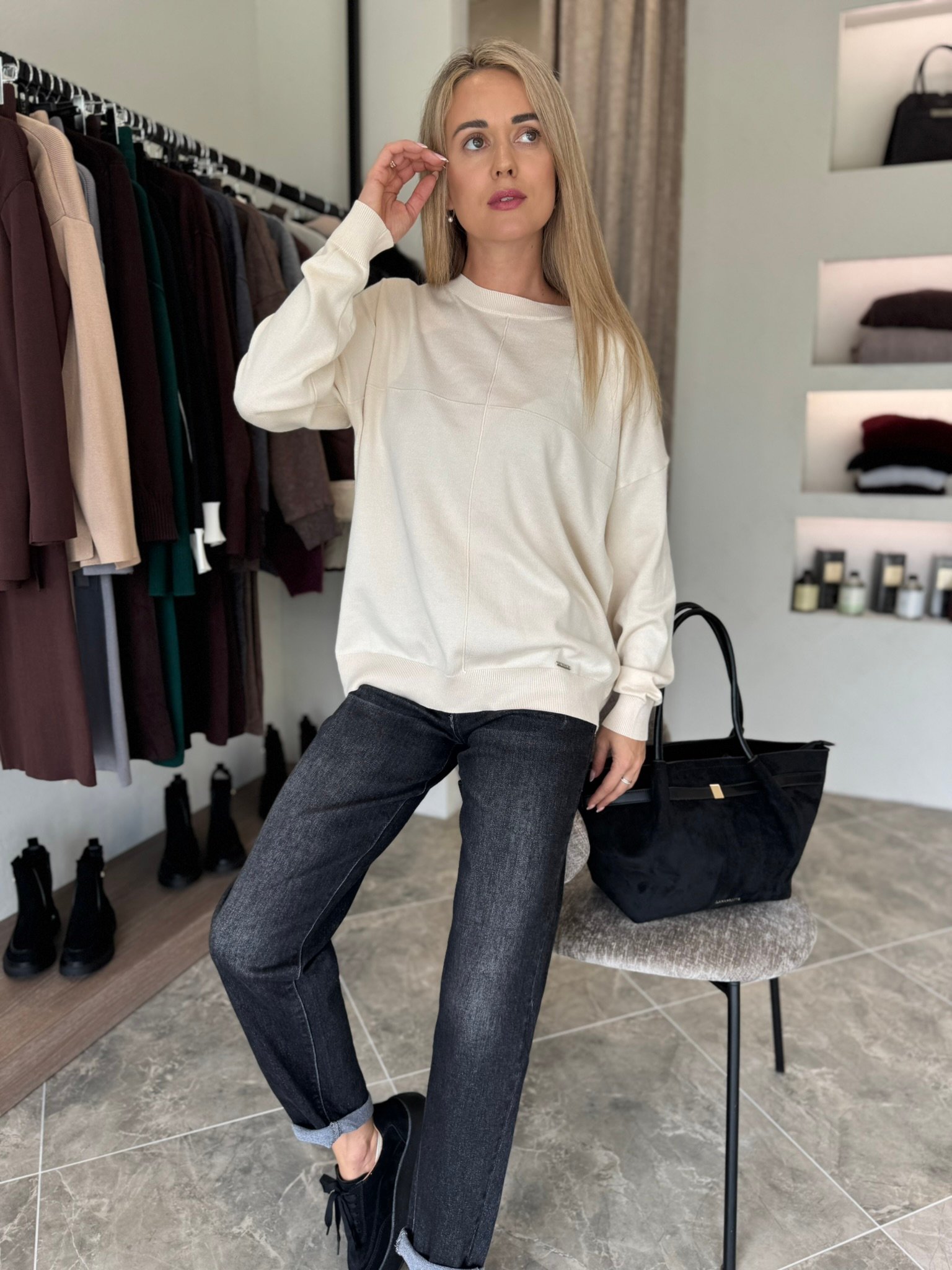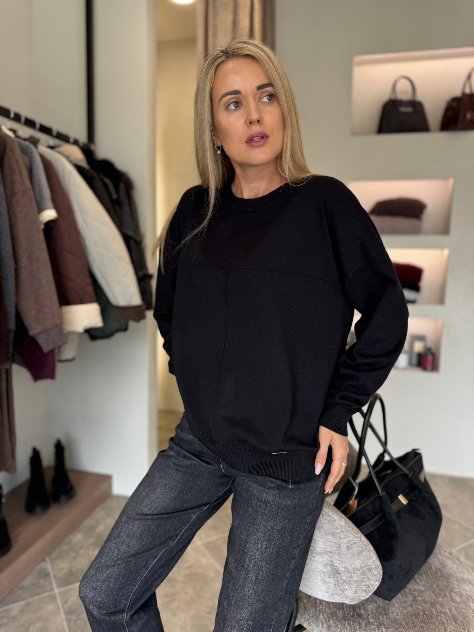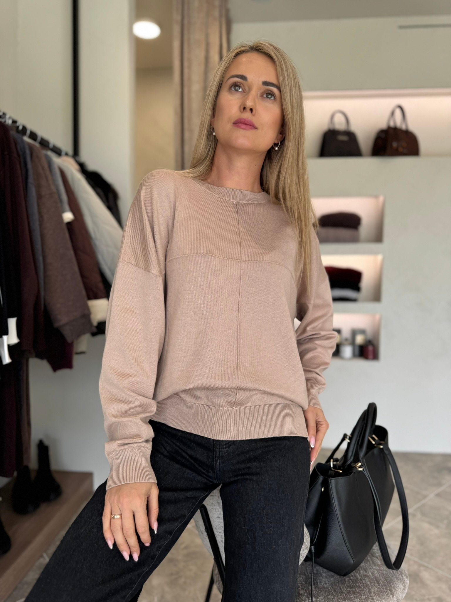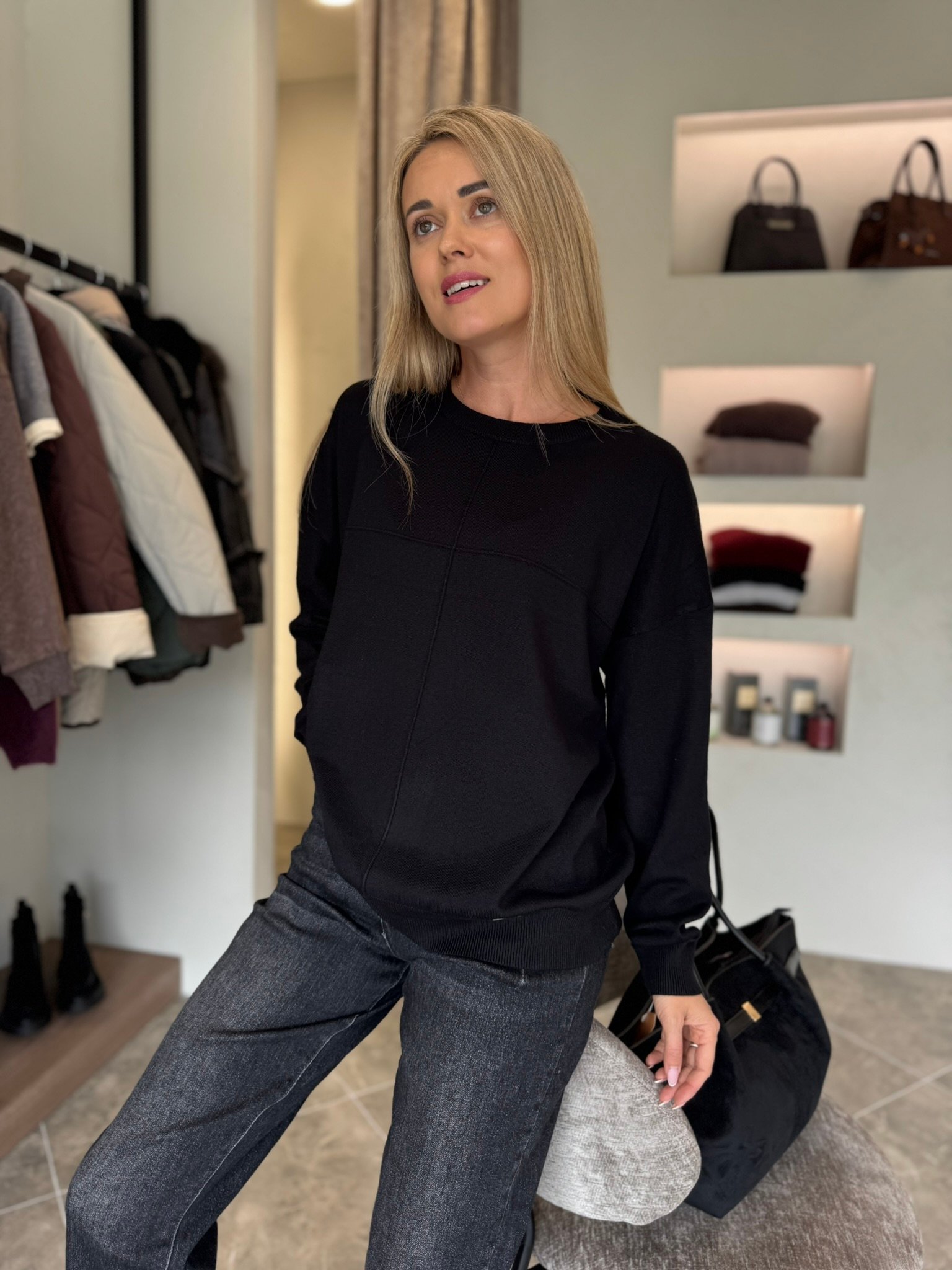Klasikinis ir universalus – „Urban Basic“ megztinis taps nepakeičiamu kasdienybės palydovu. Minkštas, malonus kūnui audinys nevaržo judesių, o minimalistinis dizainas su subtiliomis siūlėmis suteikia modernumo akcentą. Šis modelis puikiai dera tiek prie džinsų, tiek prie sijono – idealiai tinka darbui, laisvalaikiui ar jaukiam pasivaikščiojimui mieste.