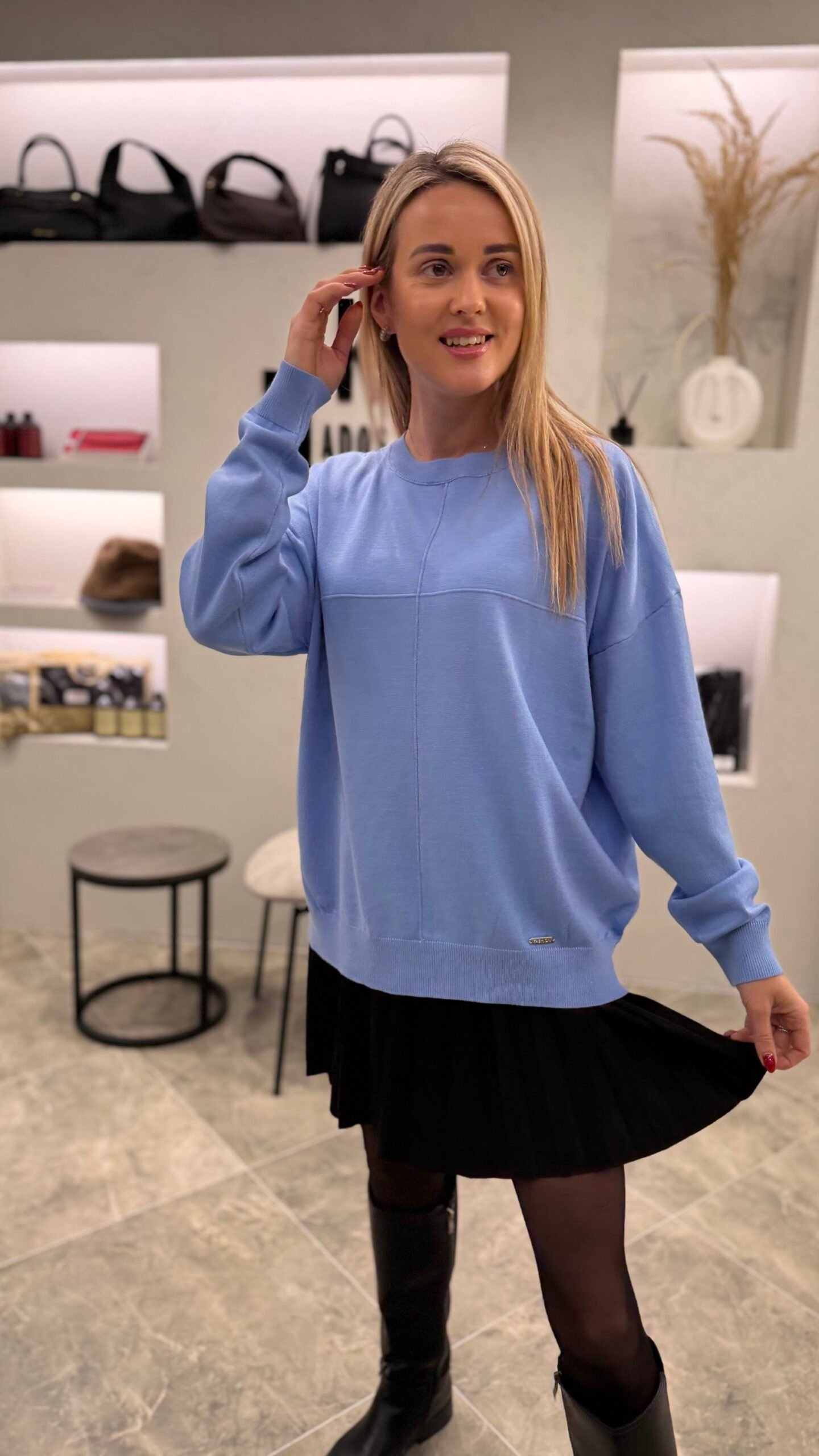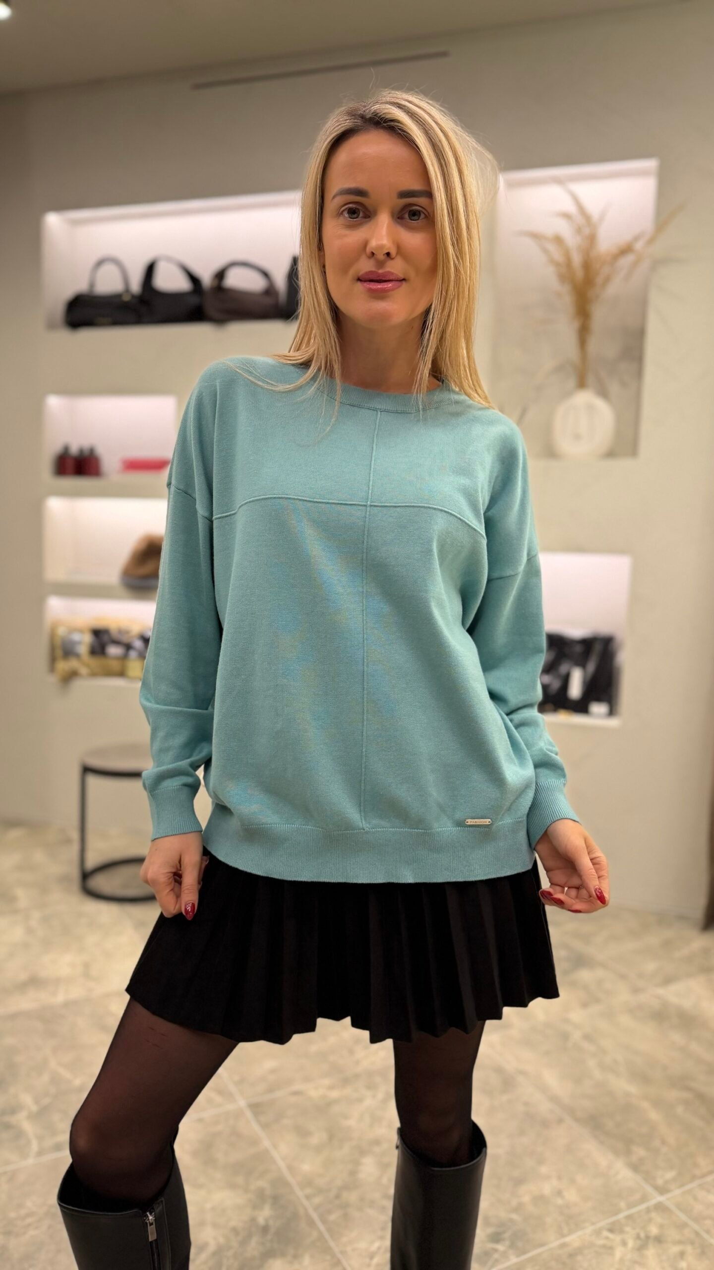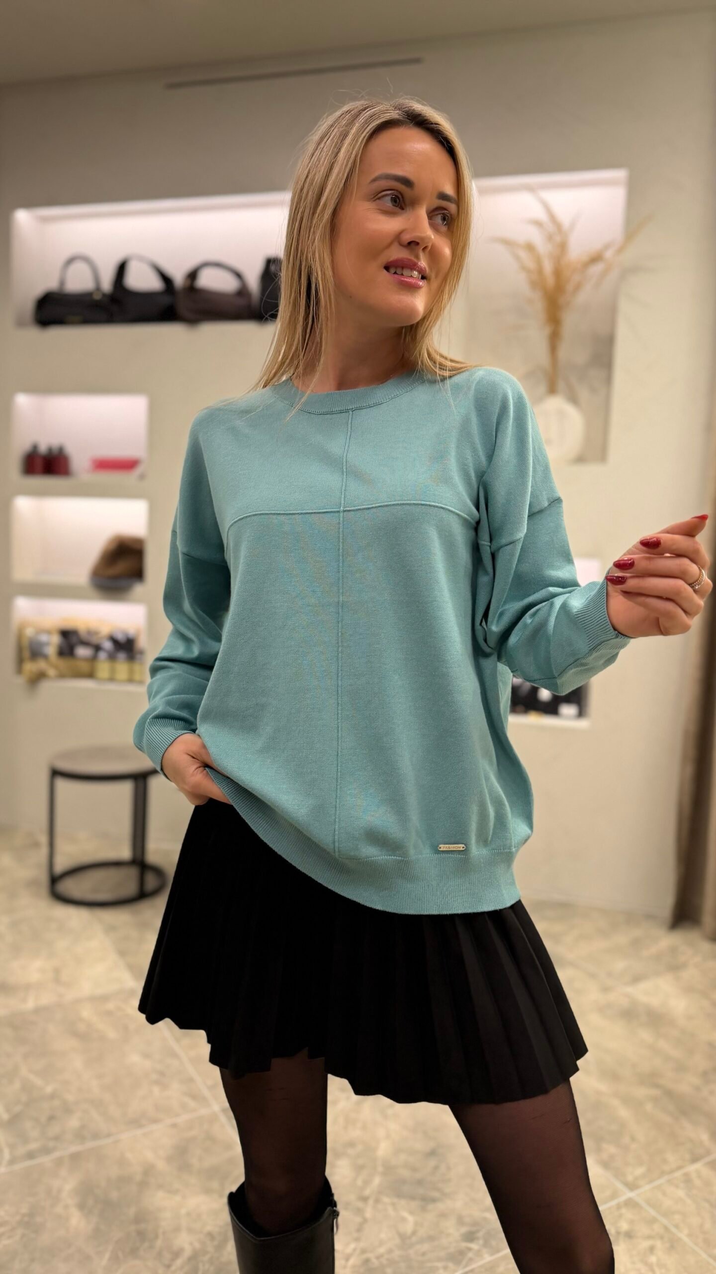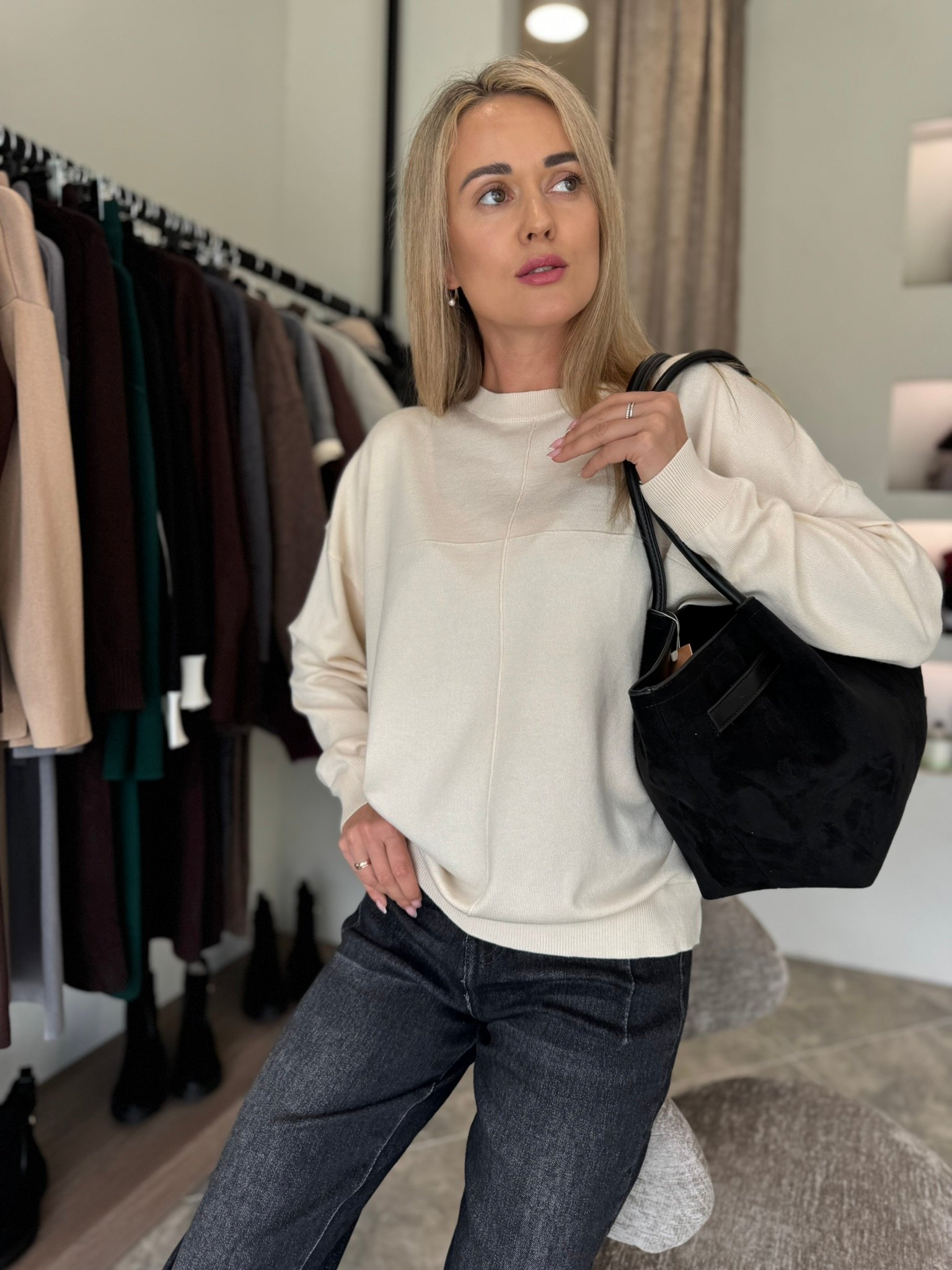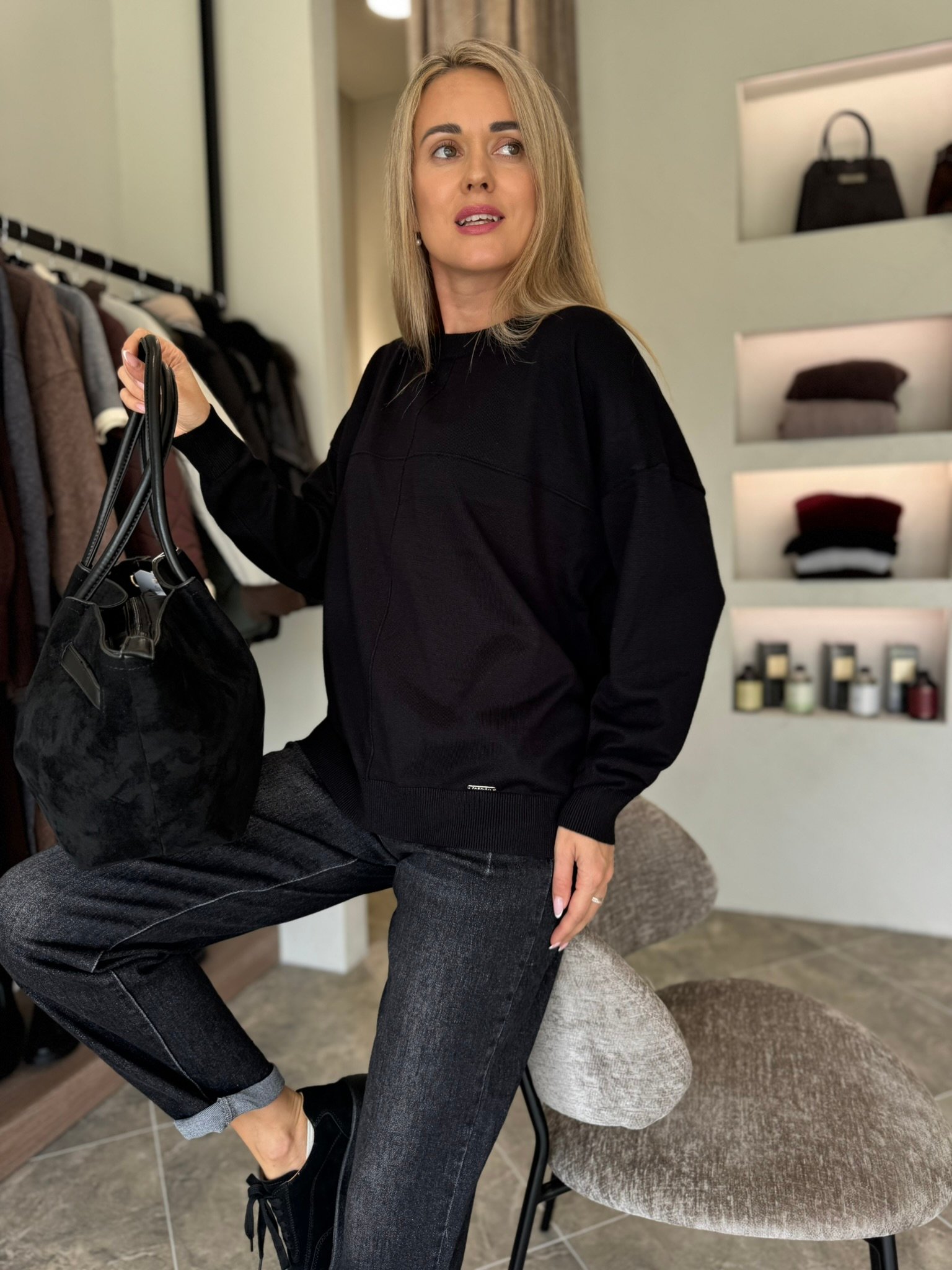 Klasikinis ir universalus – „Urban Basic“ megztinis taps nepakeičiamu kasdienybės palydovu. Minkštas, malonus kūnui audinys nevaržo judesių, o minimalistinis dizainas su subtiliomis siūlėmis suteikia modernumo akcentą. Šis modelis puikiai dera tiek prie džinsų, tiek prie sijono – idealiai tinka darbui, laisvalaikiui ar jaukiam pasivaikščiojimui mieste.